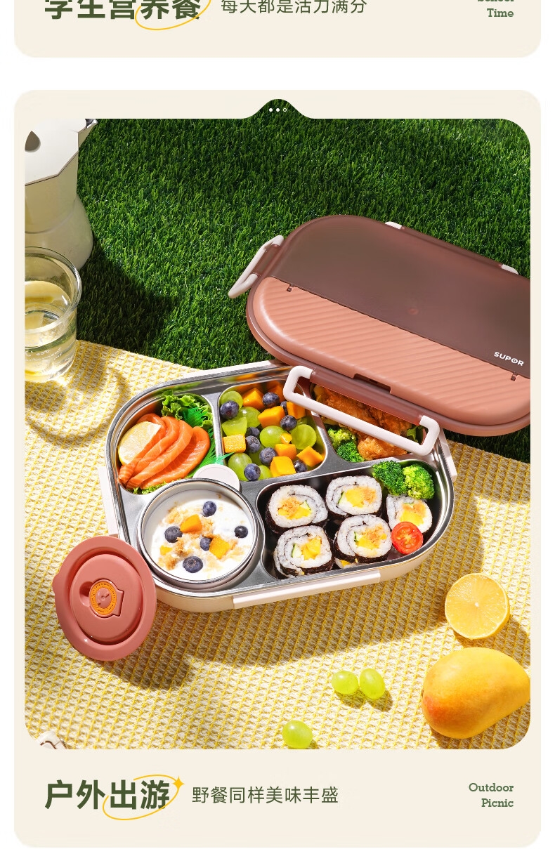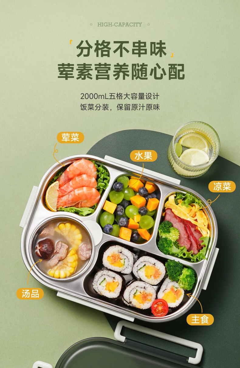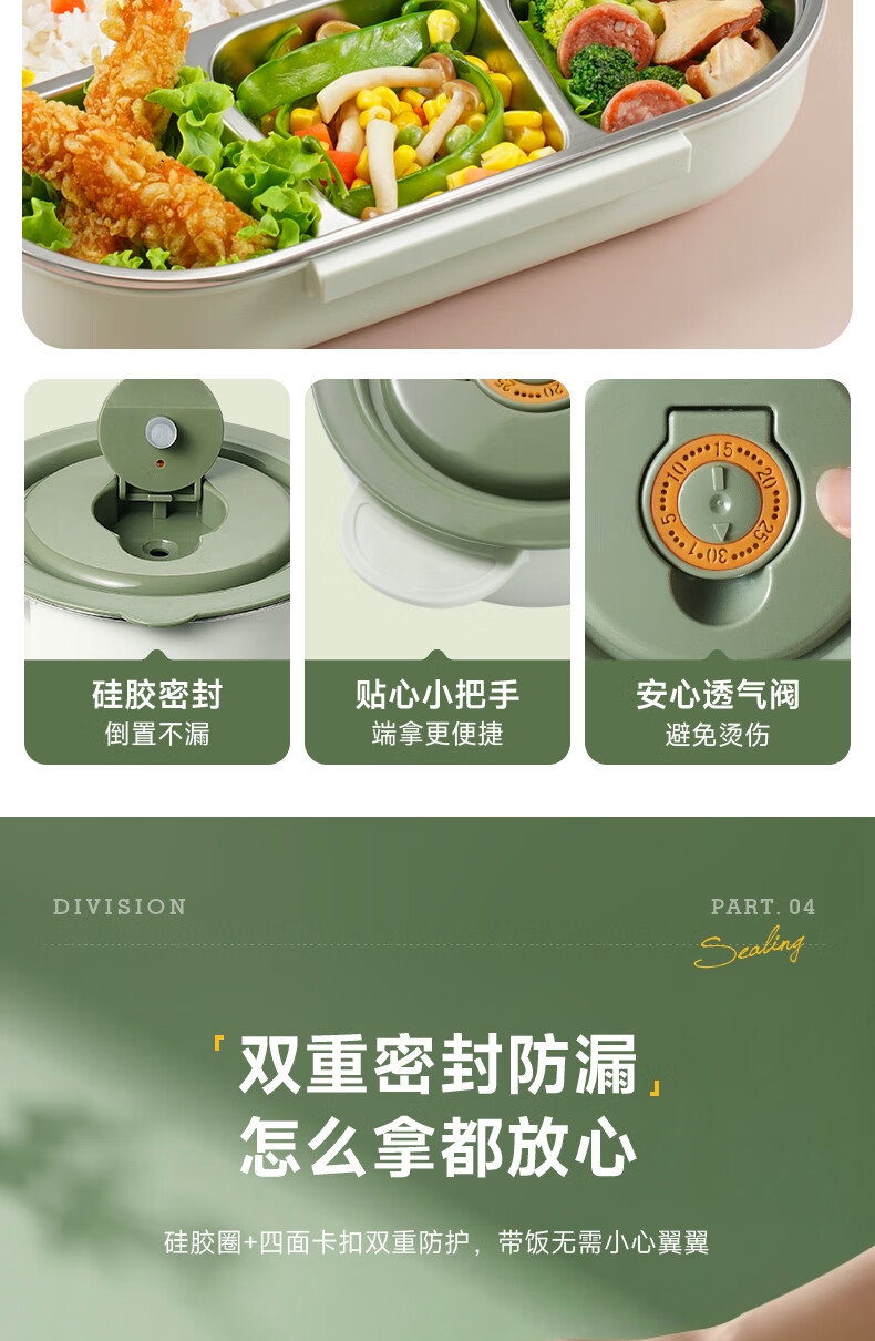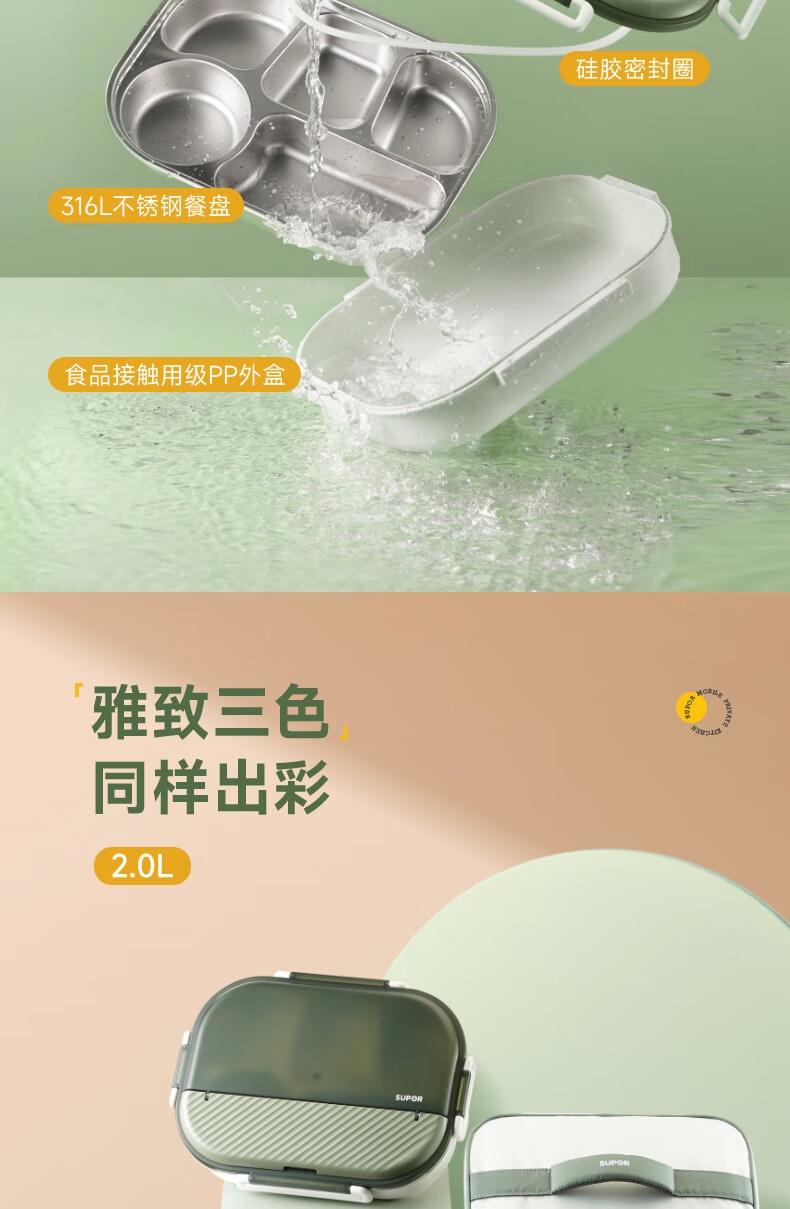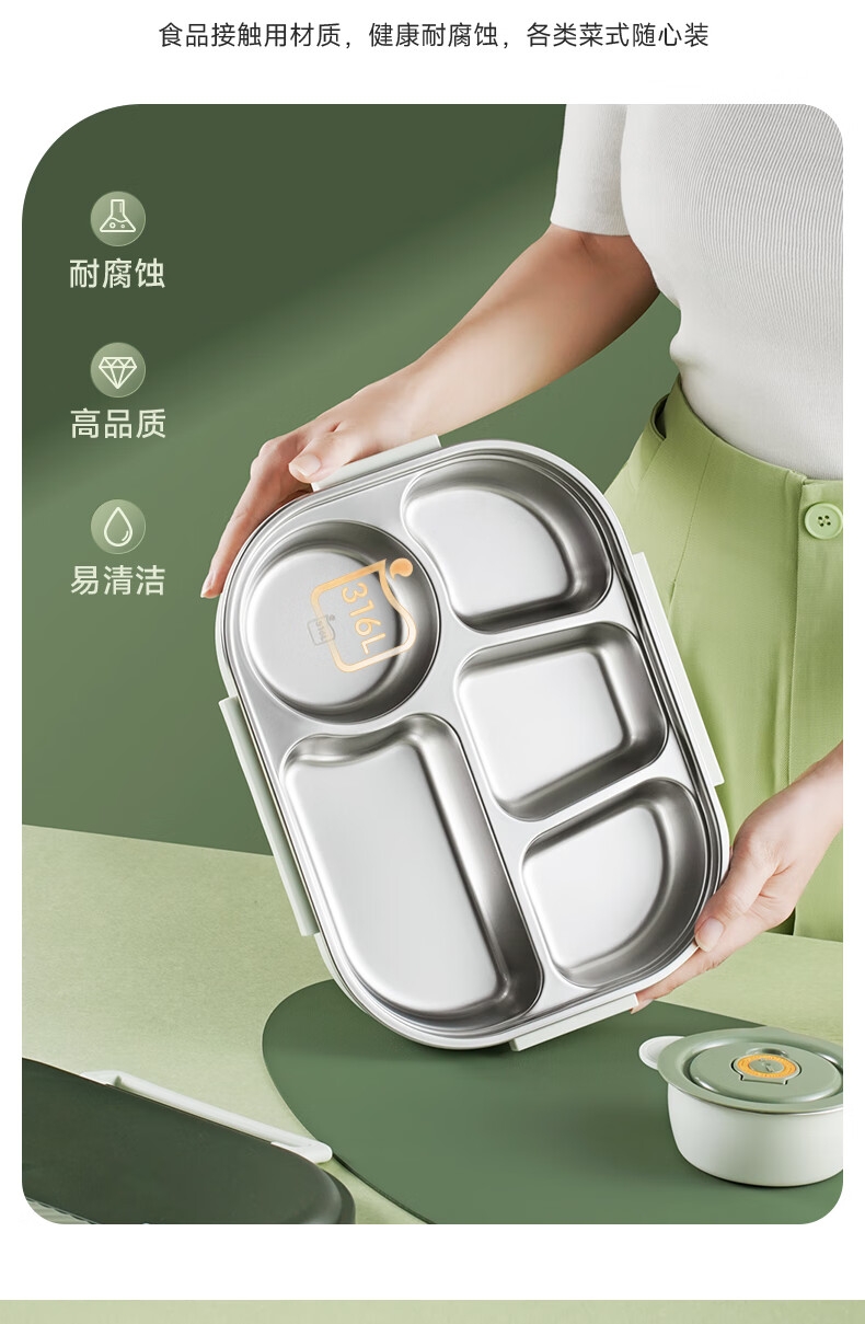 316不锈钢;内置餐具,注水保温;双层独立防烫碗