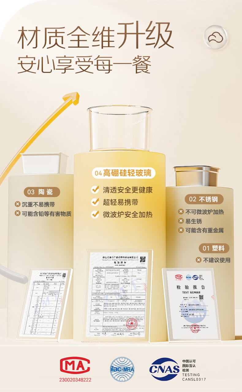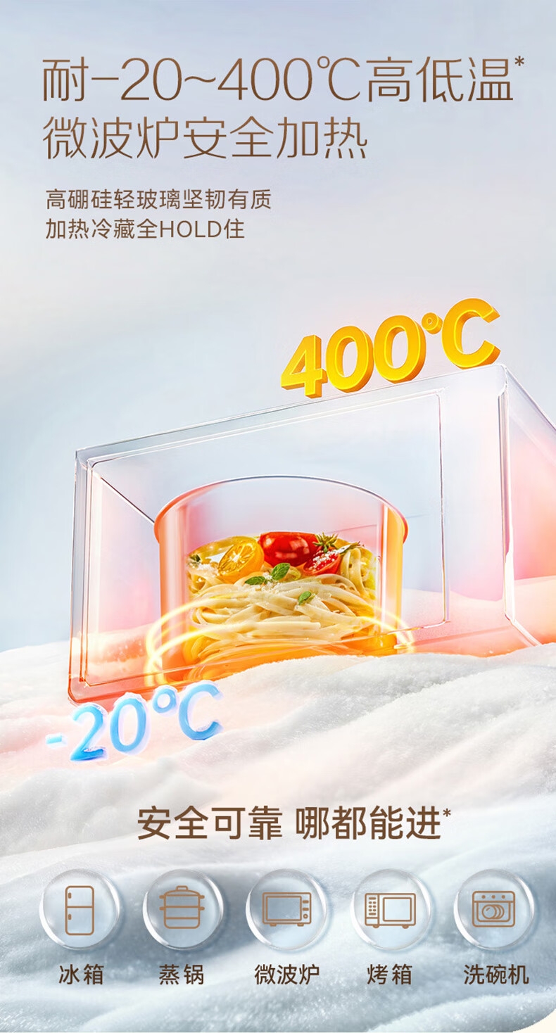 高硼硅轻玻璃内盒;微波炉安全加热;一盒一美味不串味