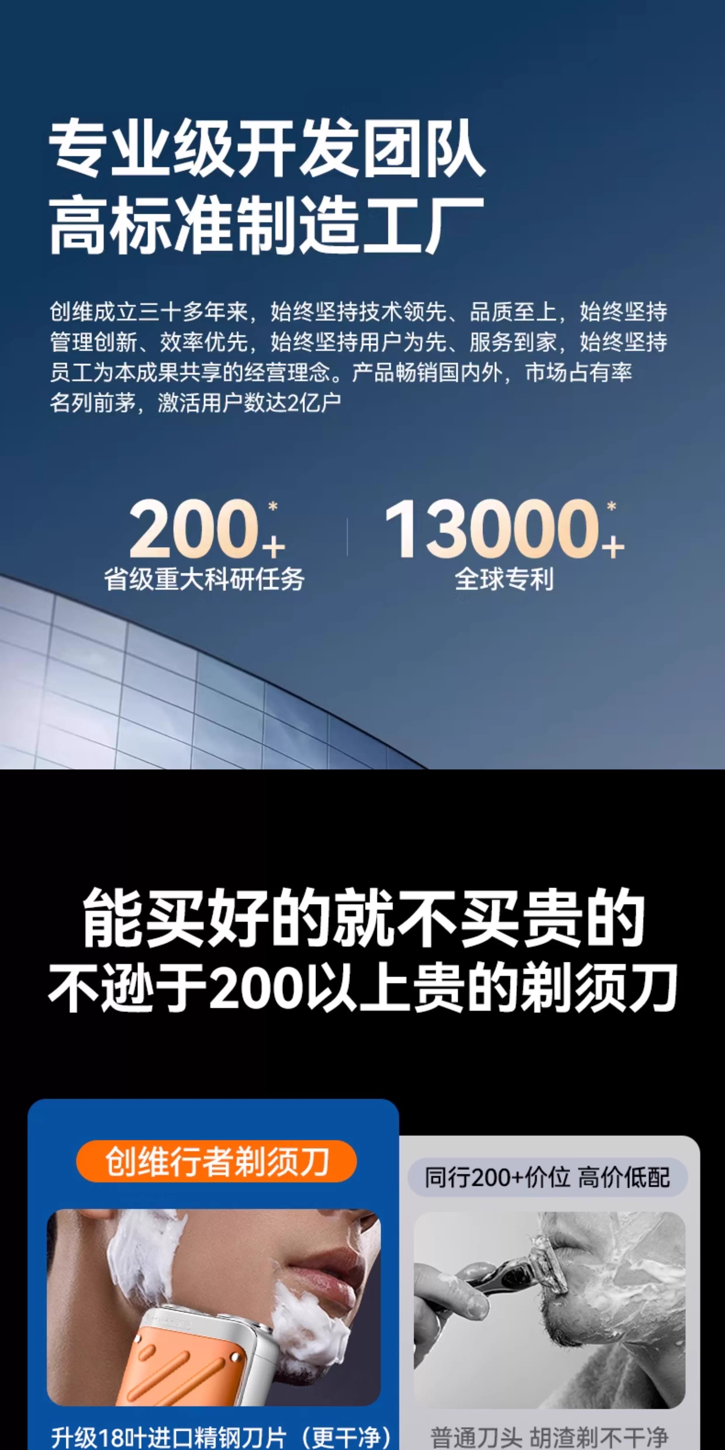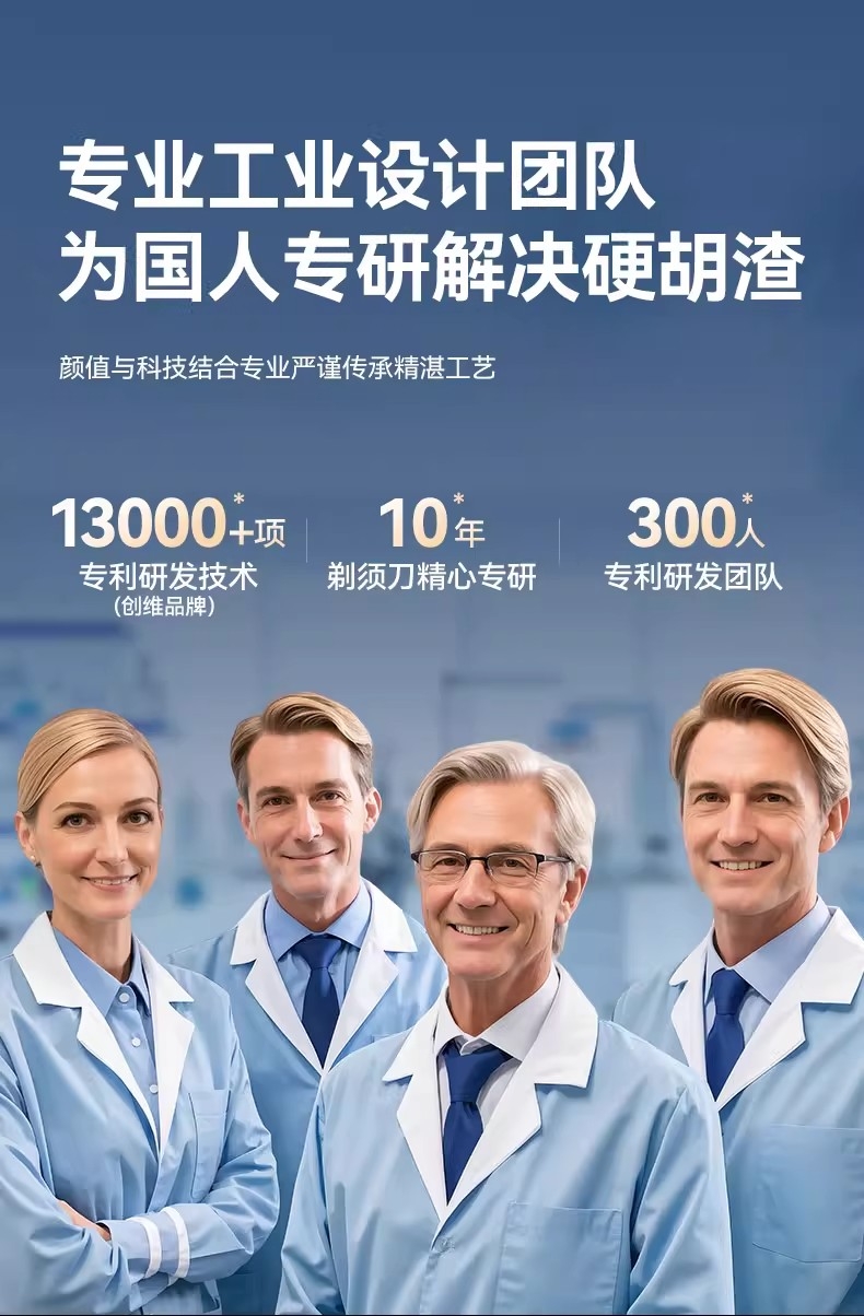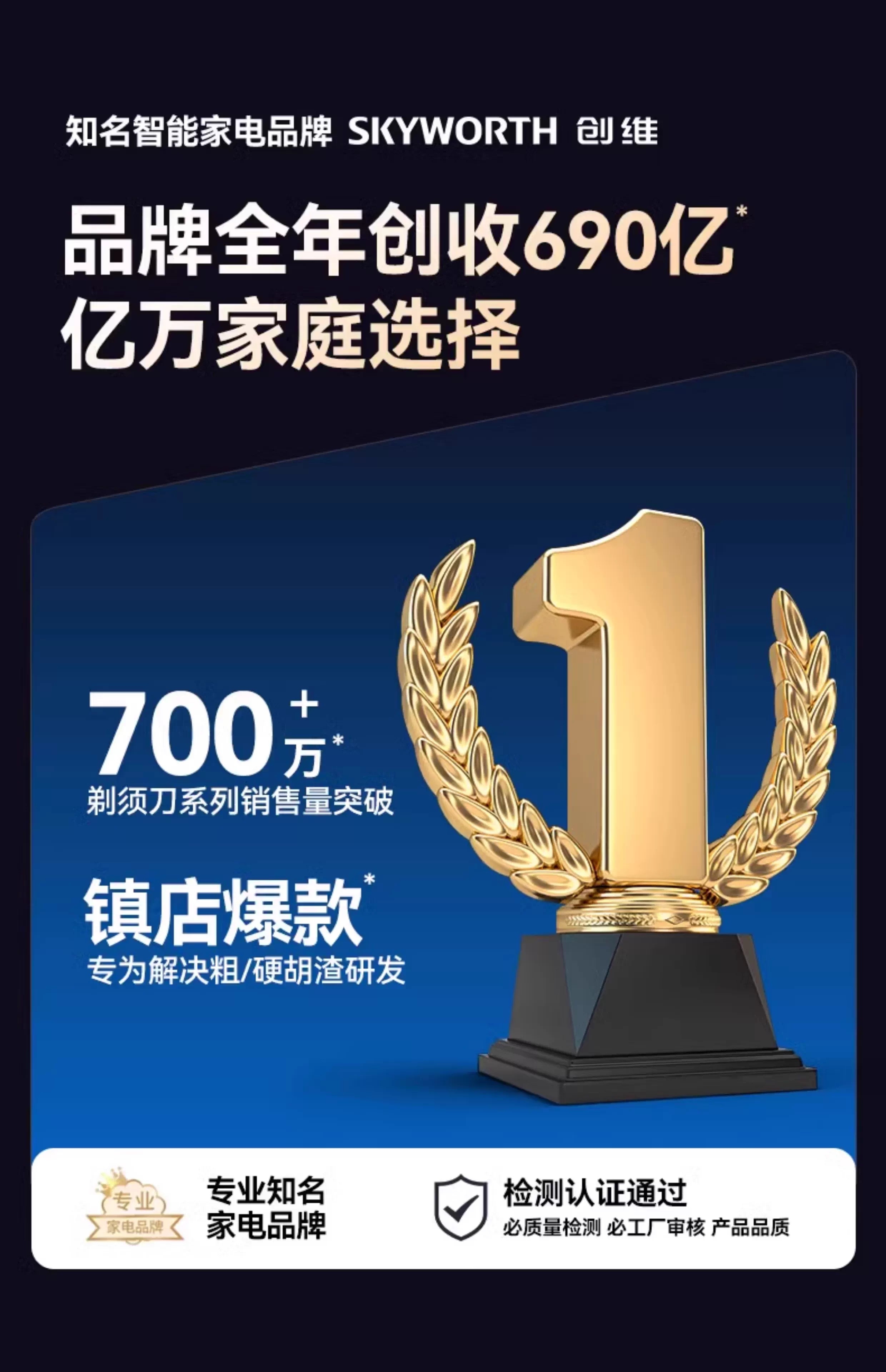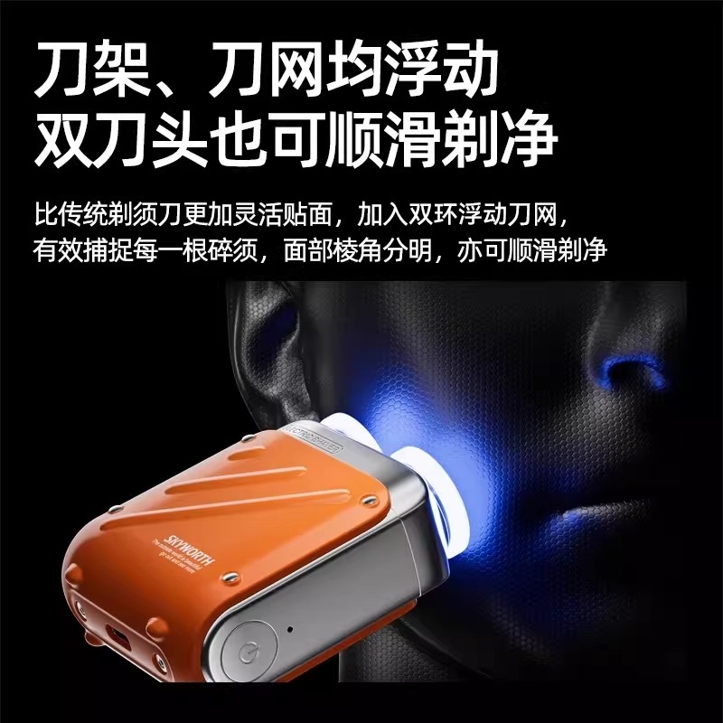 IPX7级防水,干湿双剃 全身水洗;充电一小时,续航60天;自研磨技术,刀片越用越锋利