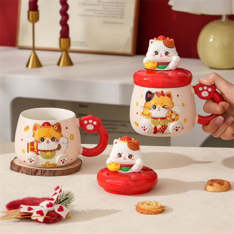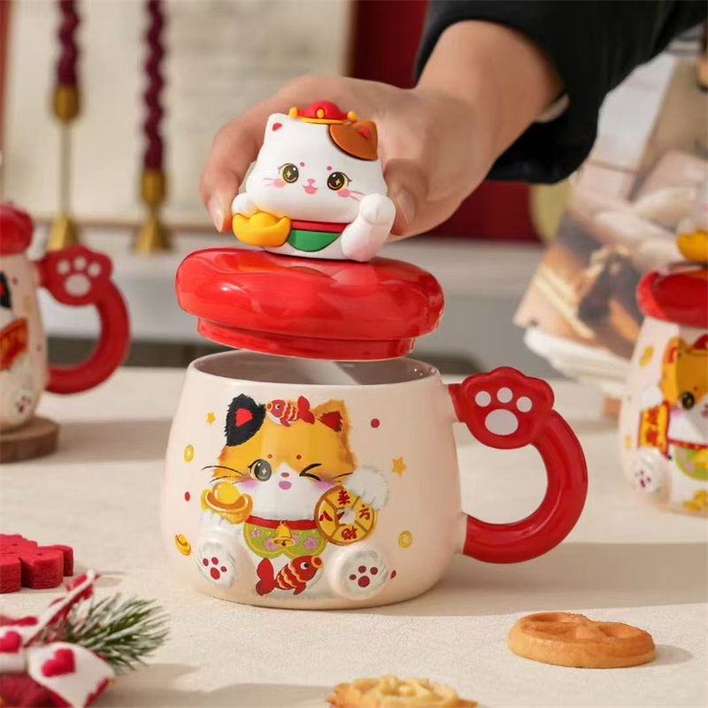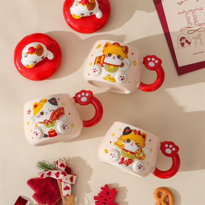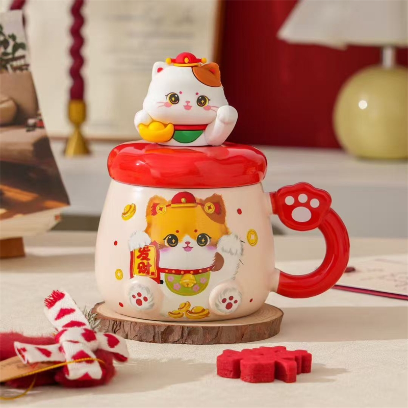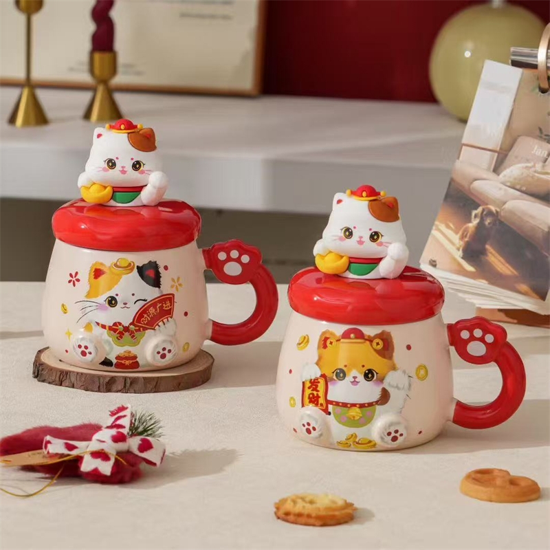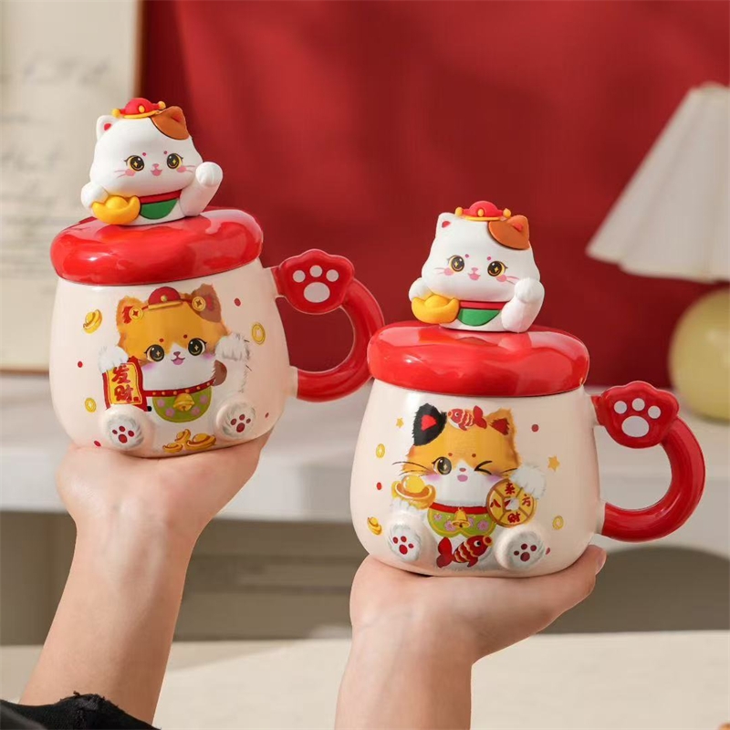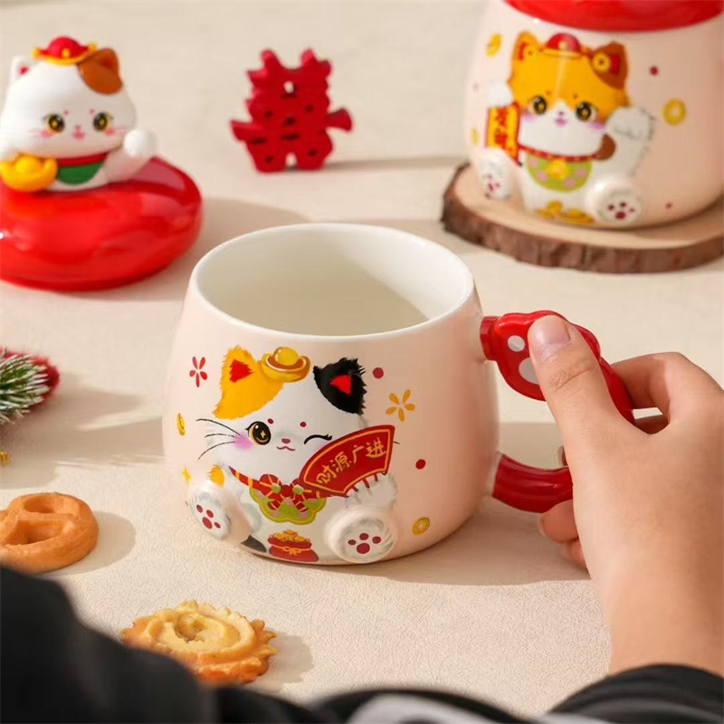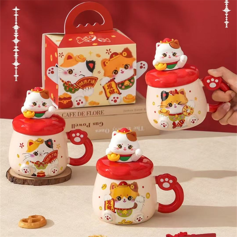 过年伴手礼猫咪陶瓷杯430ml2351
