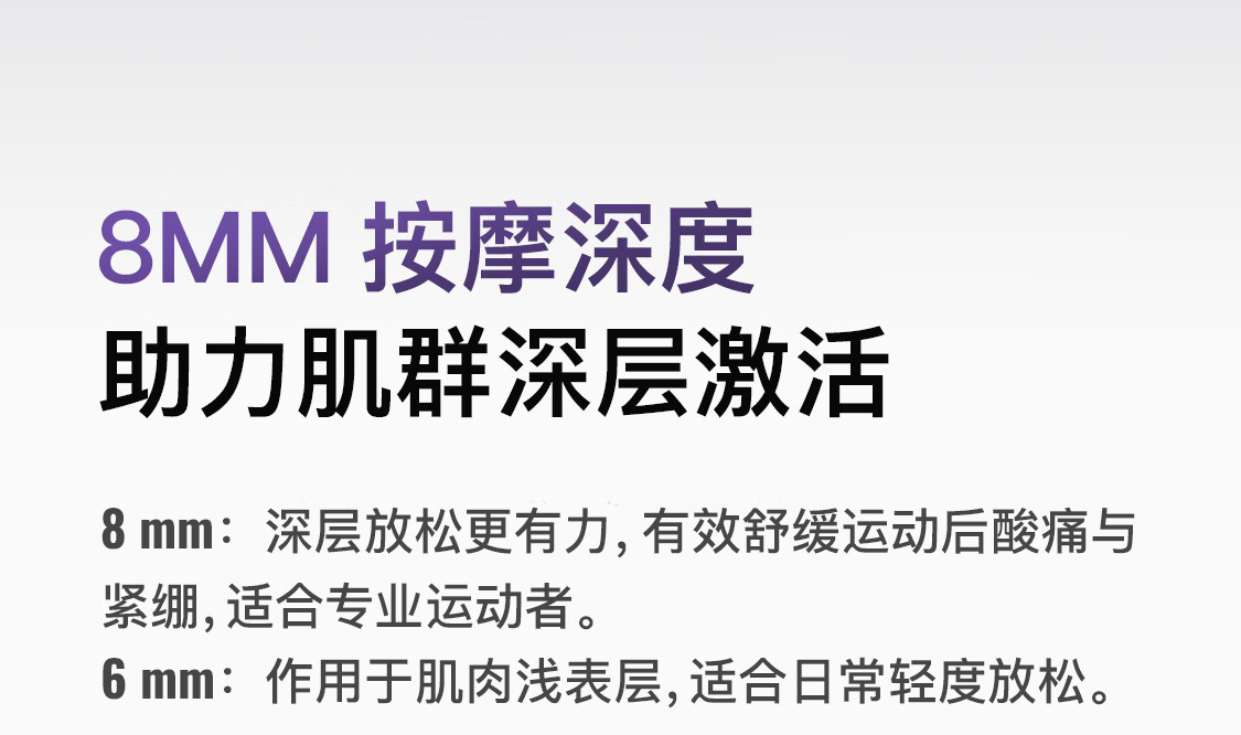 30天长效续航;8MM深度按摩;12KG强劲推力