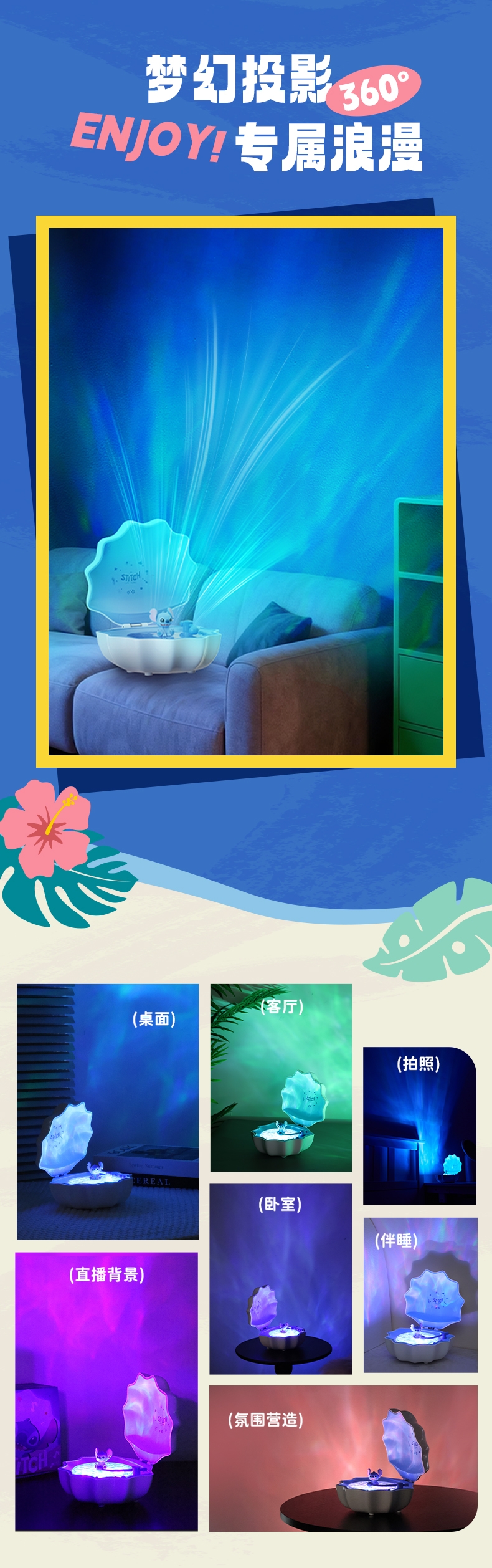 投影、 灯光、音箱三合一;7色梦幻投影,360享受专属浪漫,多场景适用;7种白噪音伴你入梦,无极调节灯光明暗度