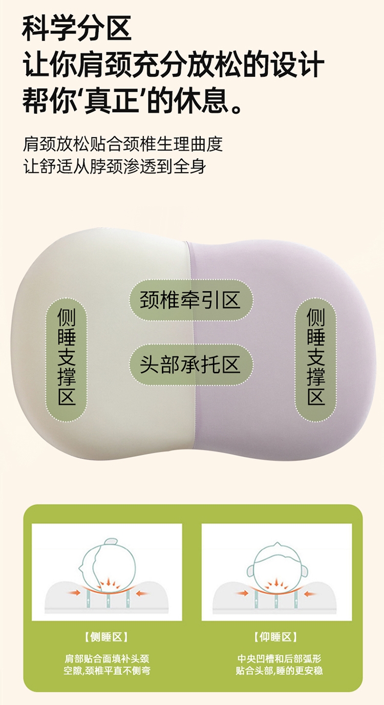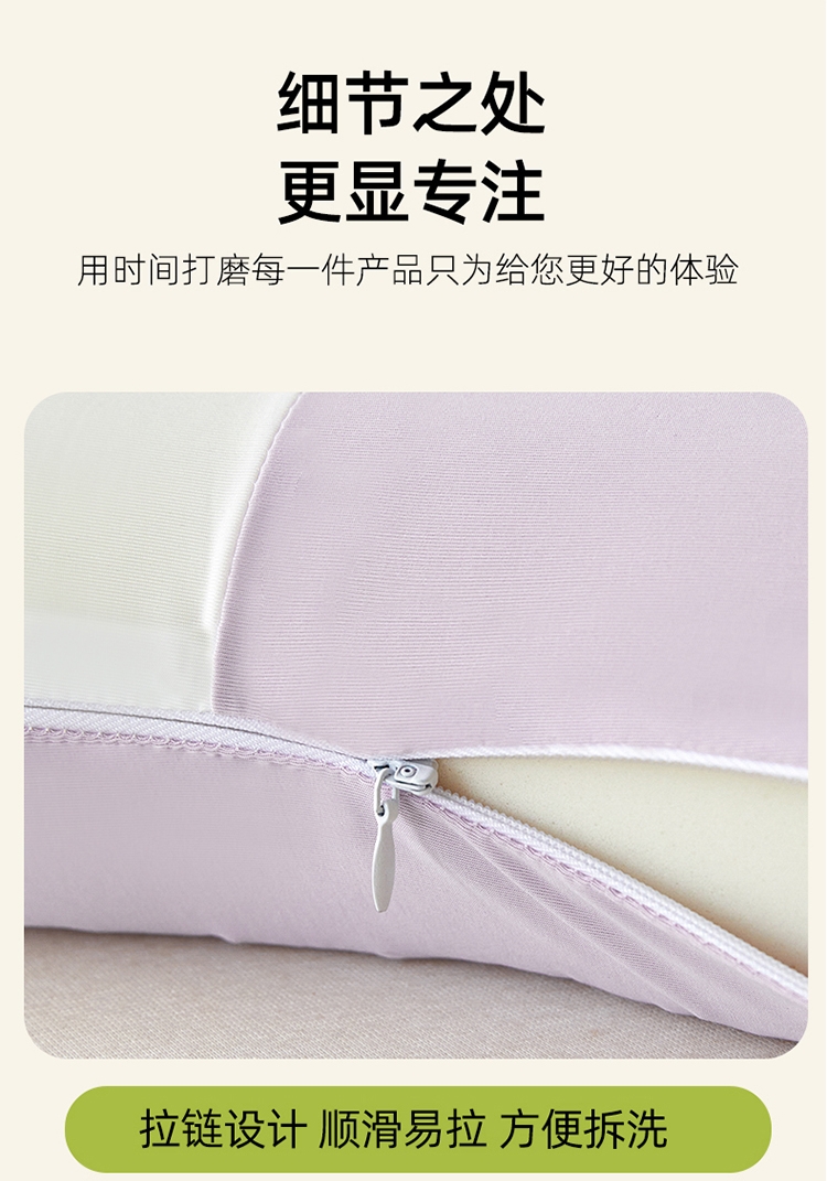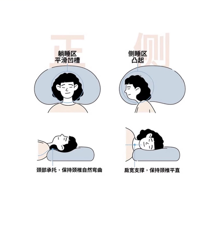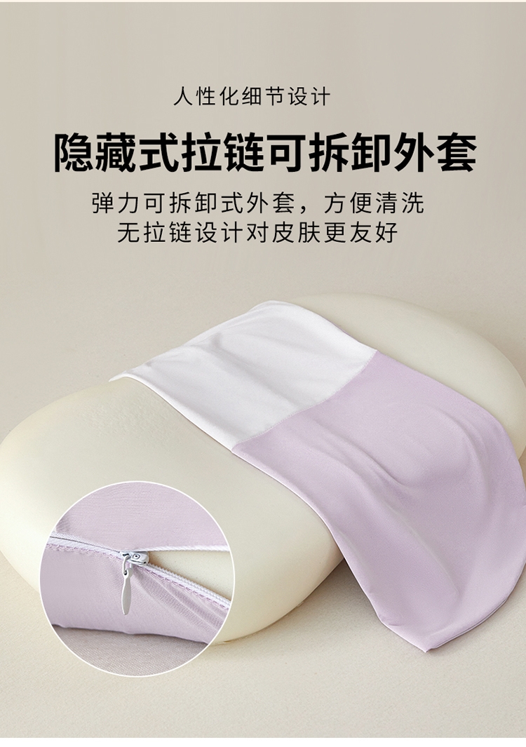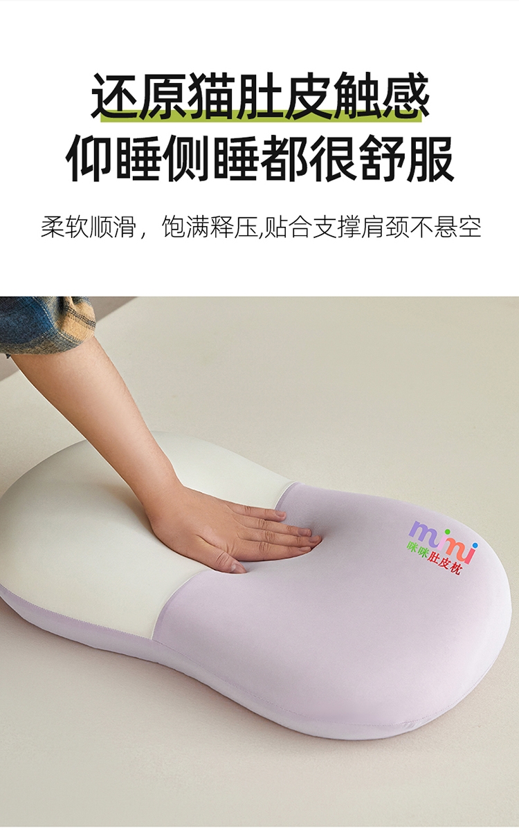 还原猫肚皮触感仰睡侧睡都很舒服 柔软顺滑,饱满释压;凉感丝面料,柔软细腻,吸湿透气软糯贴身伴您度过四季;贴合颈椎弧度,后脑紧密贴合枕头中部凹陷处,舒适承托