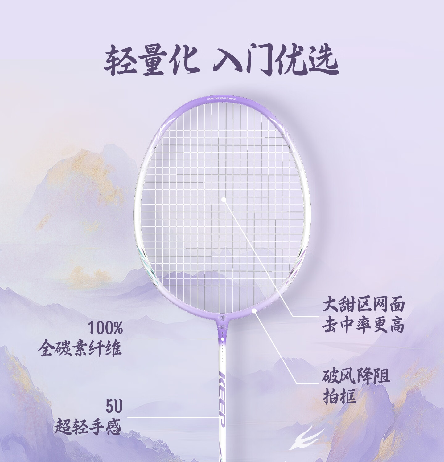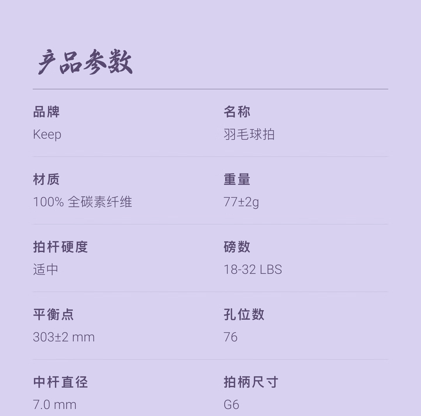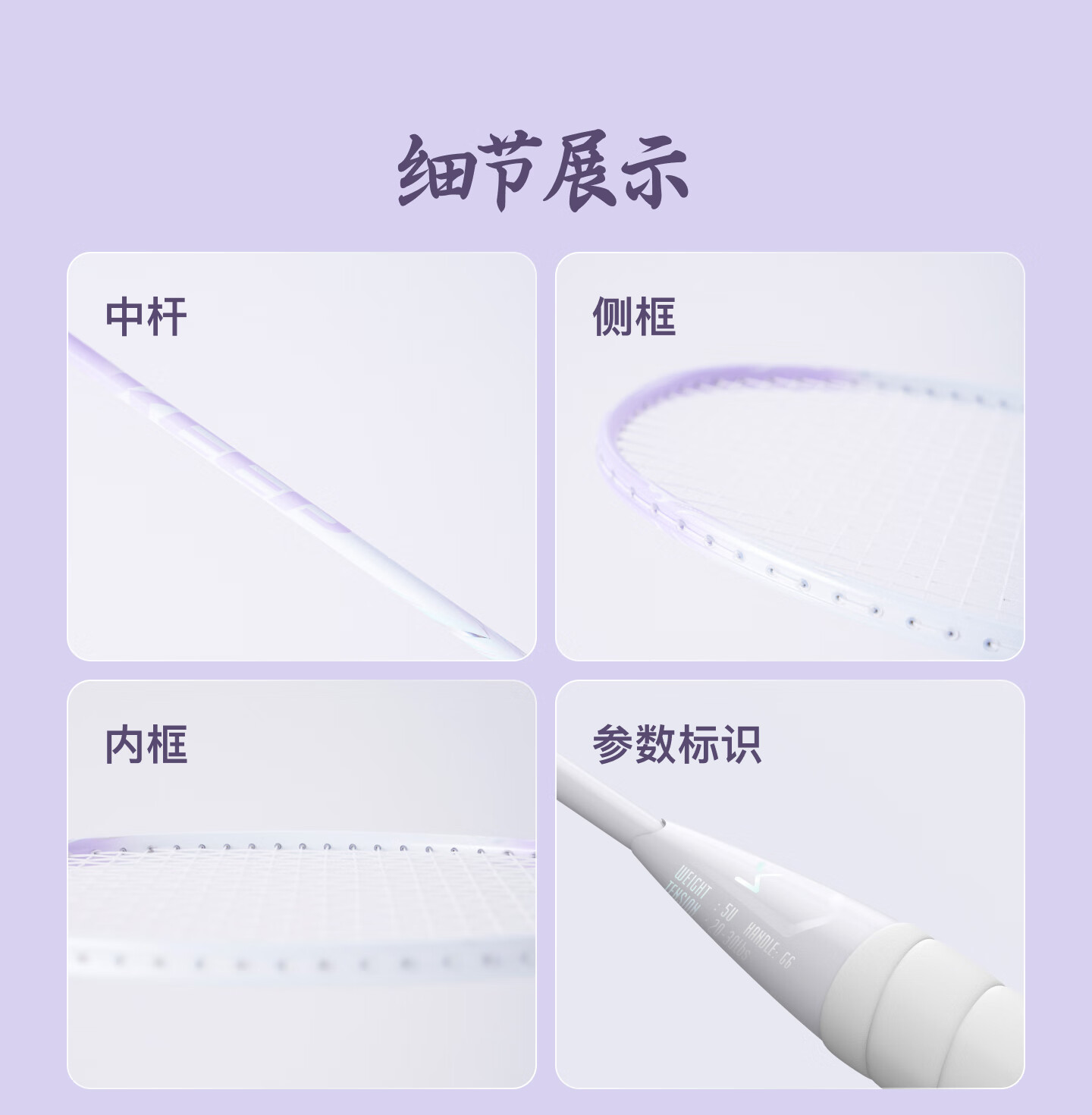 大甜区网面,去中率更高;100%全碳素纤维;5U超轻手感