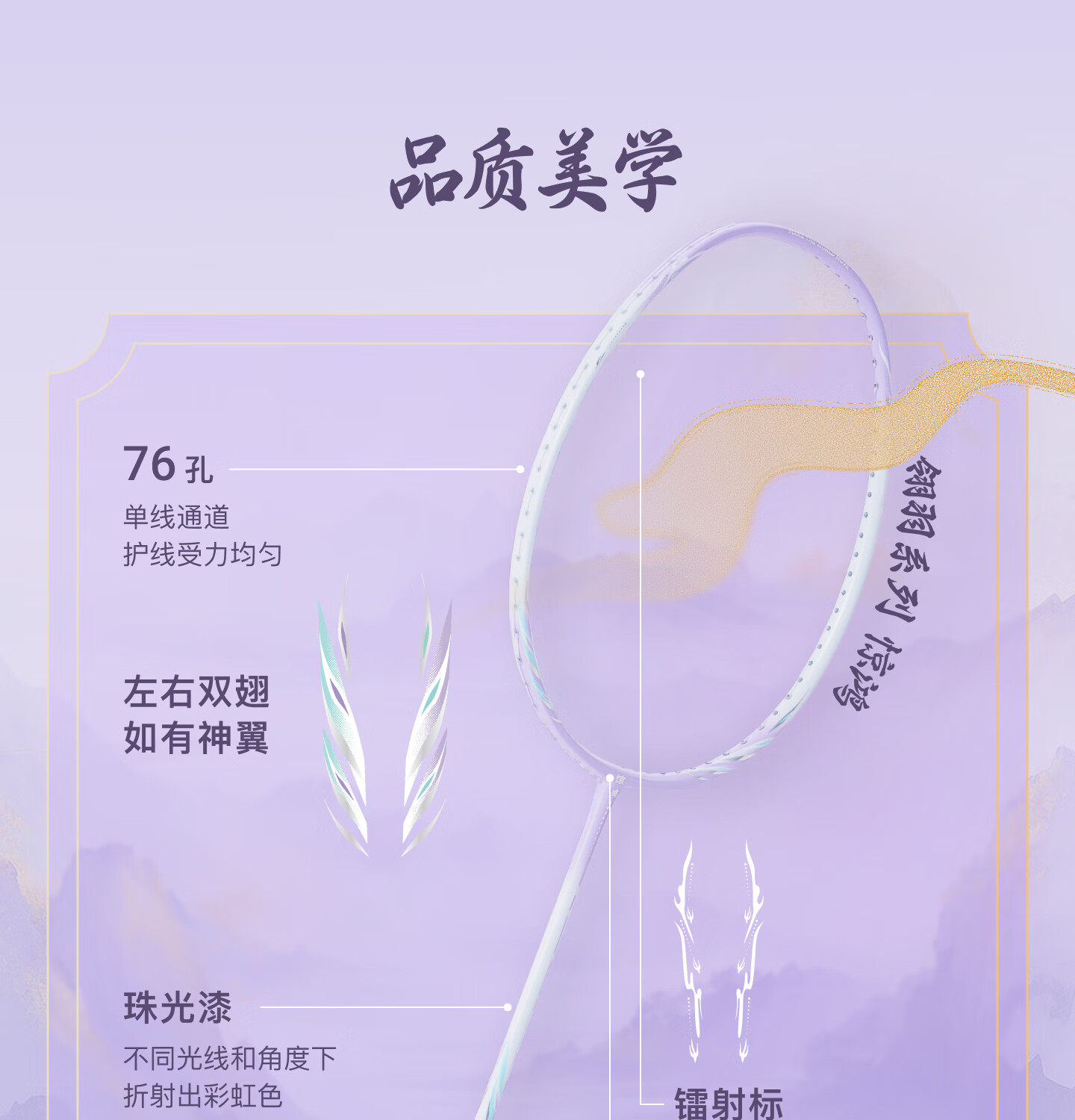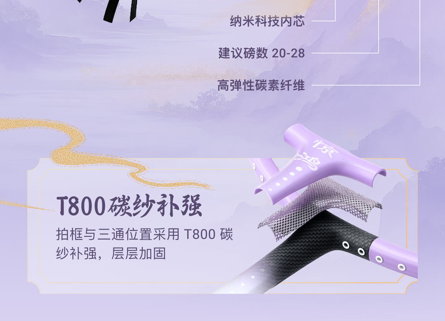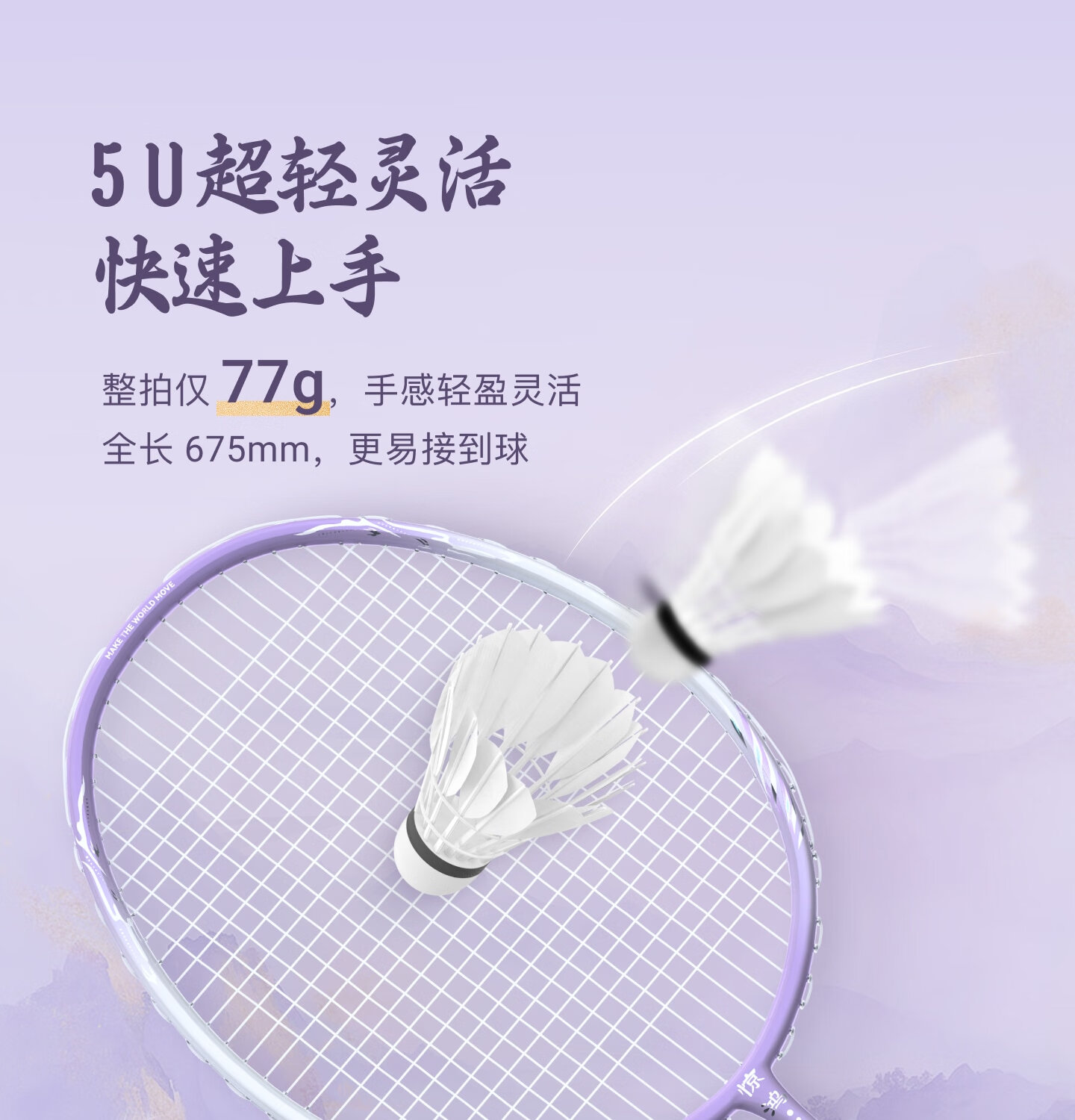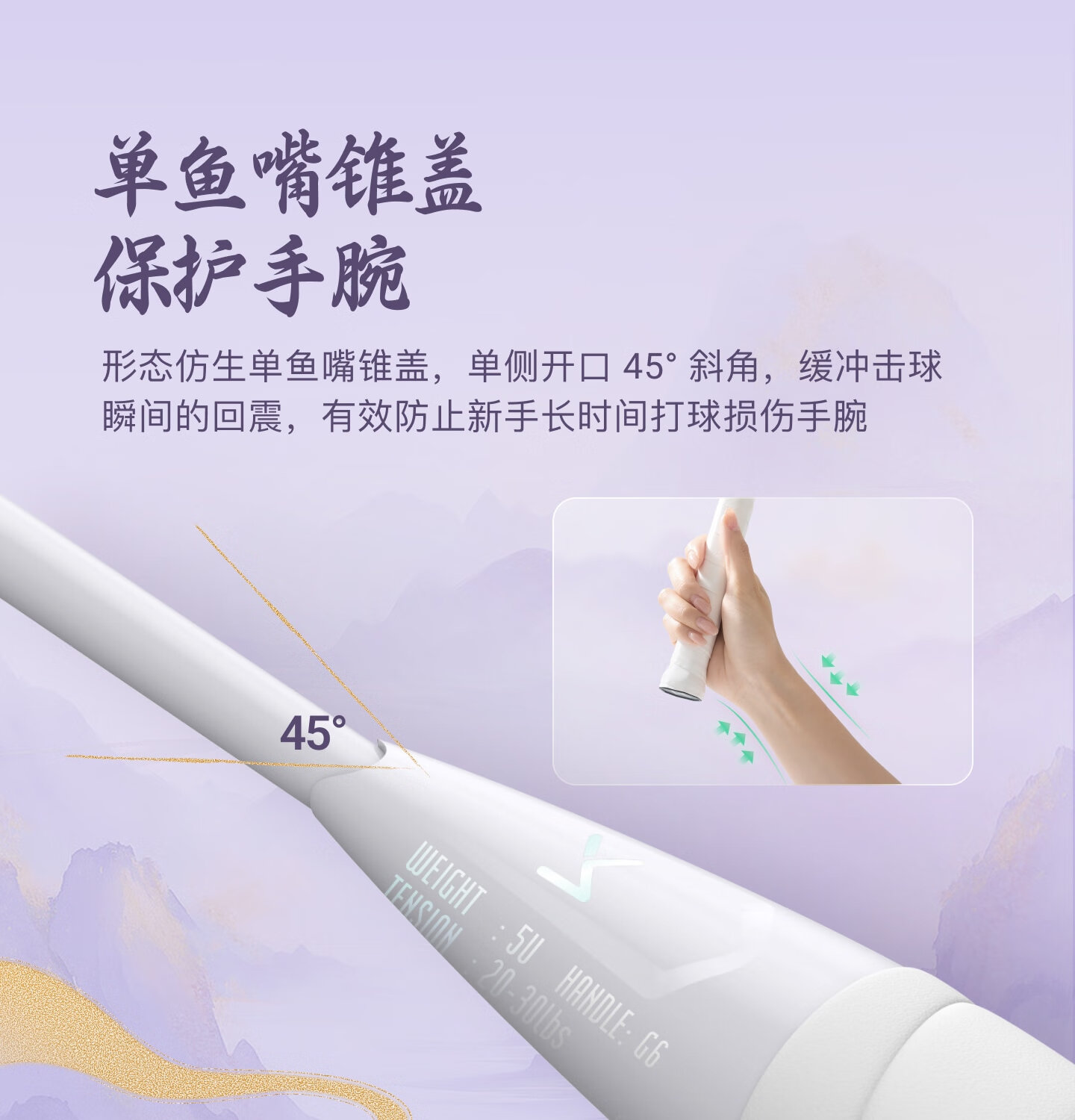 大甜区网面,去中率更高;100%全碳素纤维;5U超轻手感