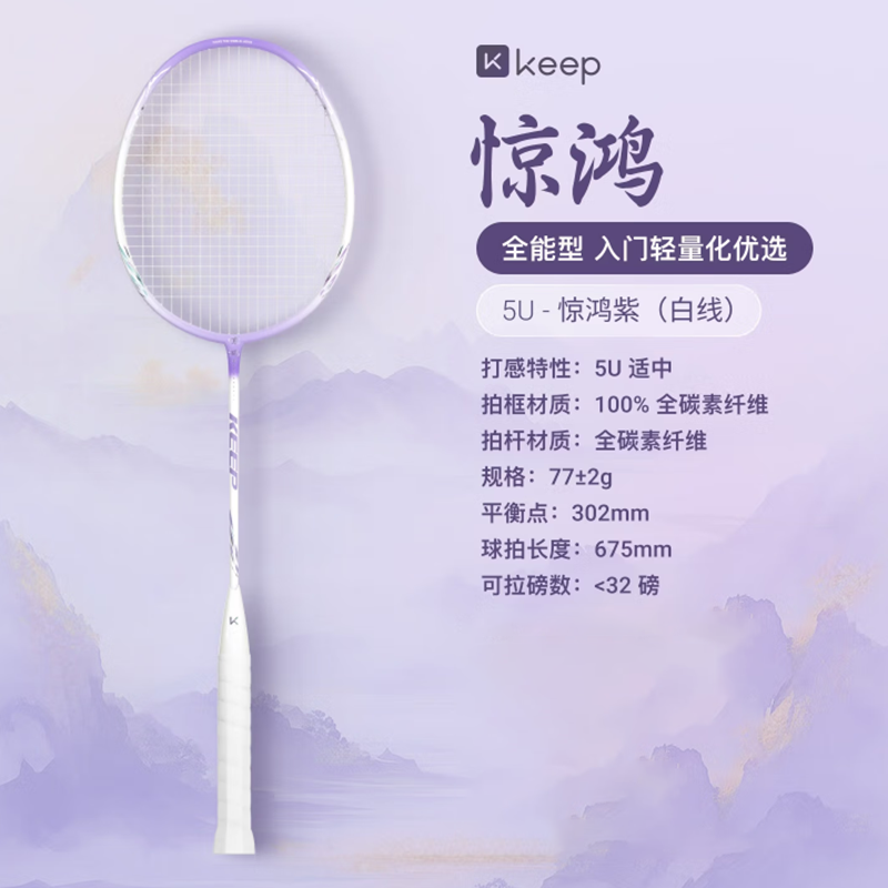 keep 超轻5U全碳素单拍羽毛球拍