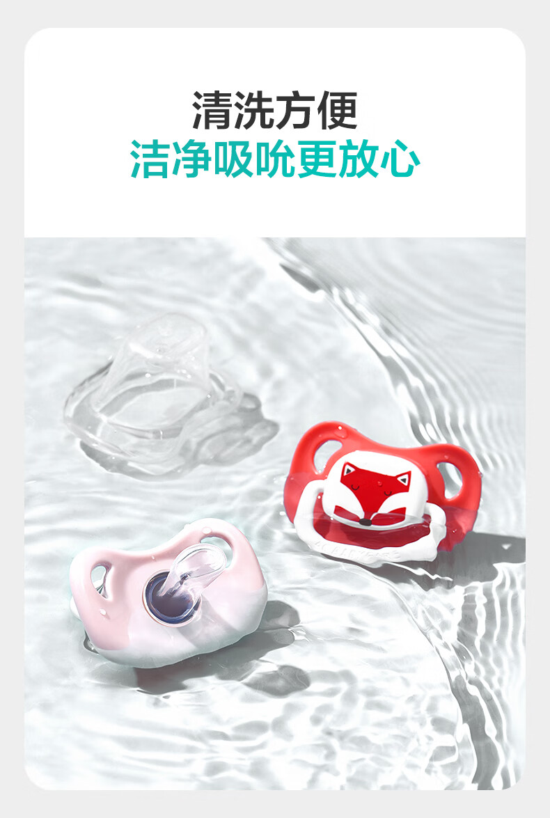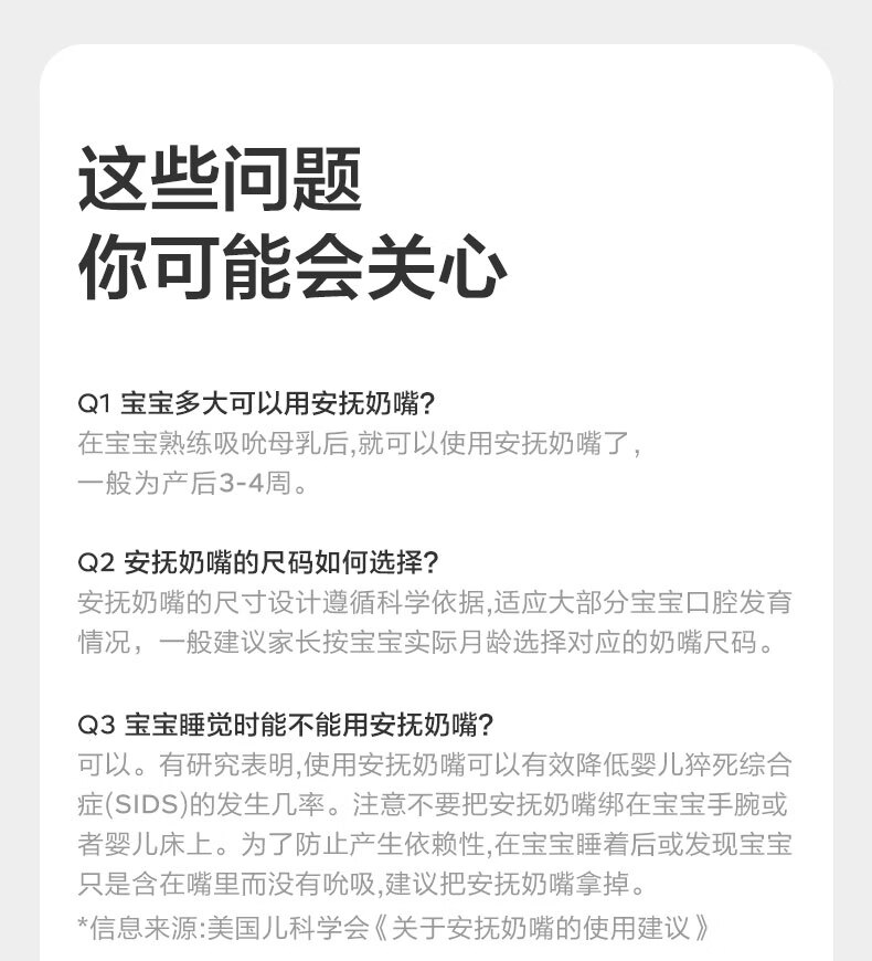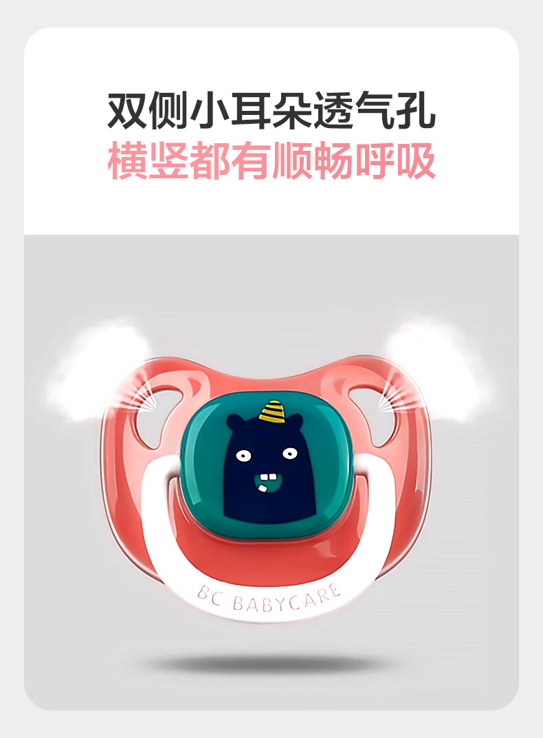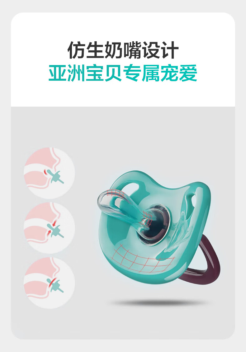 LSR食品用硅胶奶嘴耐咬耐高温;双侧小耳朵透气孔横竖都有顺畅呼吸;大中小3种size,安抚成长路上小情绪