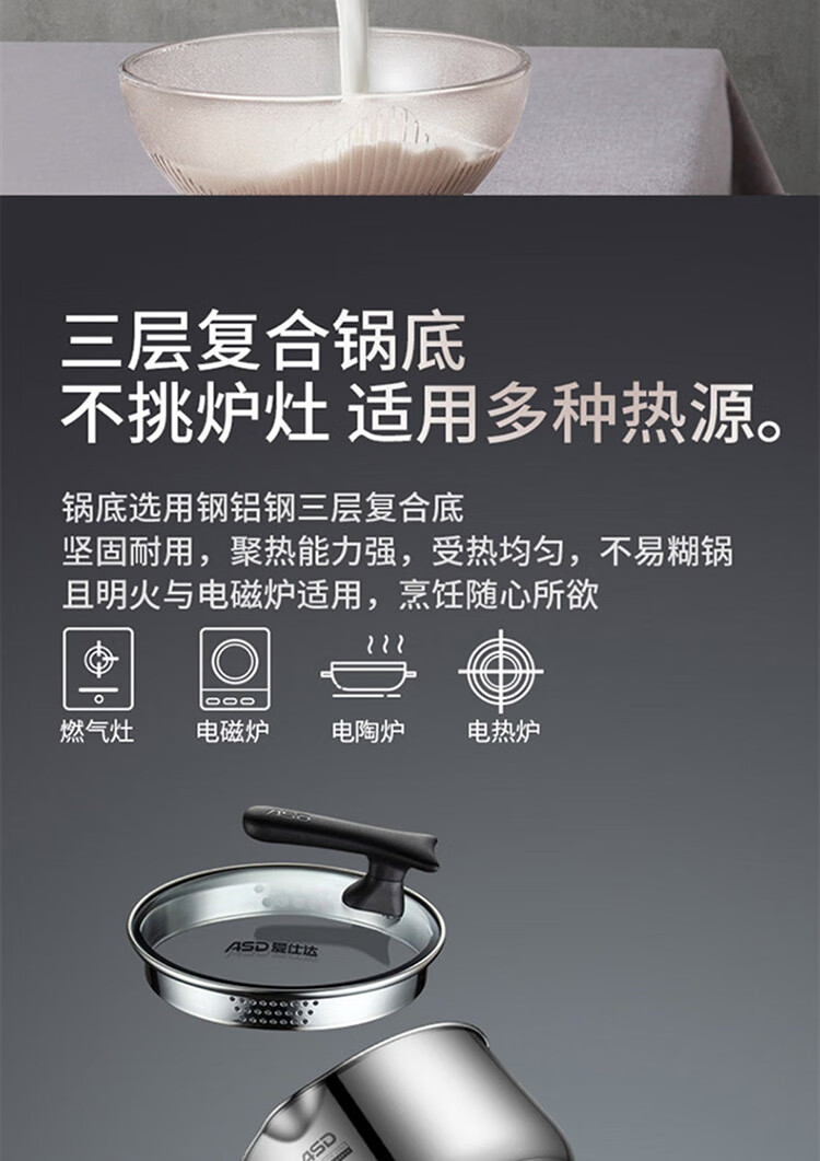 爱仕达 威尔士不锈钢复底奶锅16cmNS16L1Q