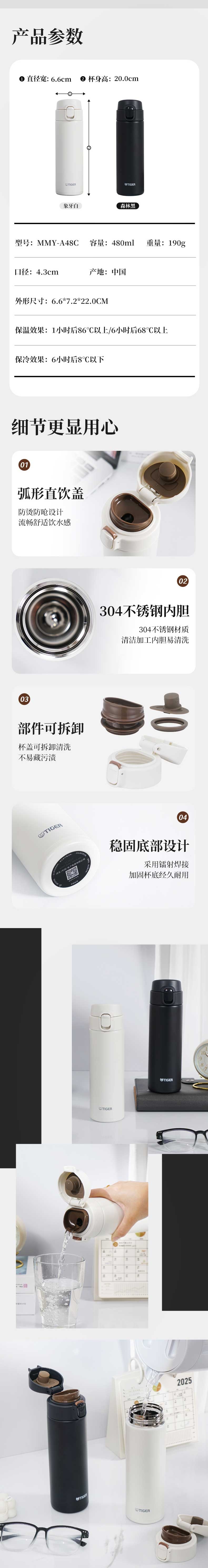 虎牌 不锈钢保温杯480mlMMY-A48C