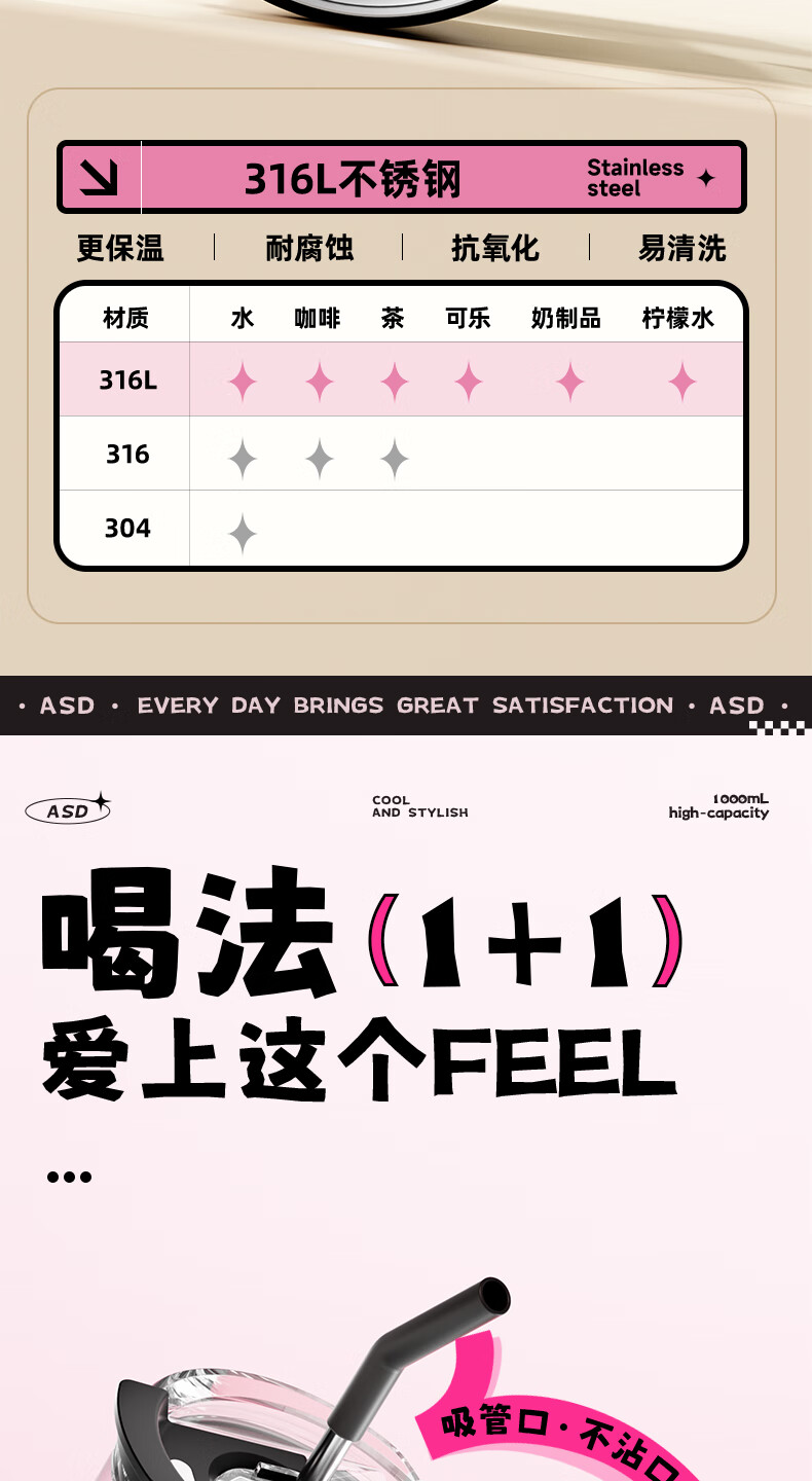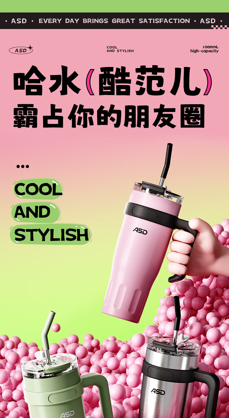 爱仕达 新支点双饮吸管杯1LRWS10P09WG-GJ/P/S
