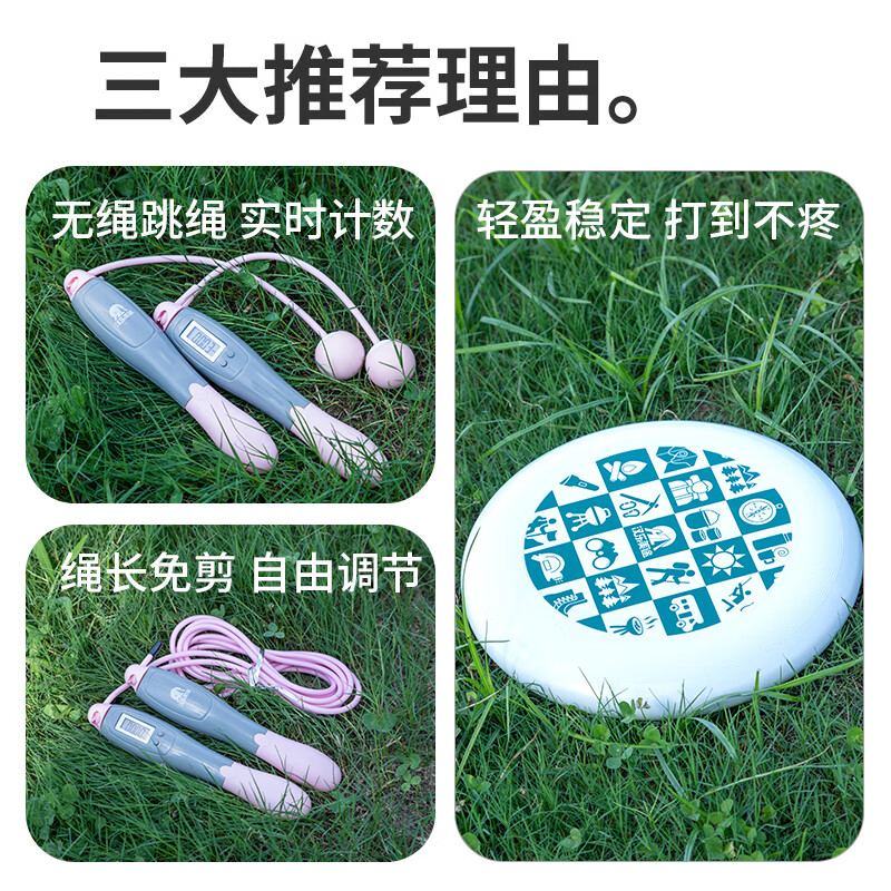 【材质】:跳绳(PP 新料+铁)飞盘(PE)