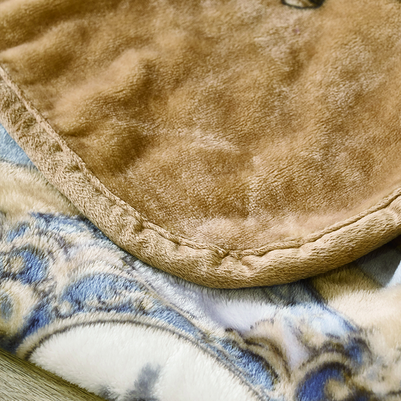 采用透气纤维面料,紧密编织使其手感滑爽;毯面蓬松,绒毛细腻轻柔;采用平网印花工艺,独幅成画,立体灵动