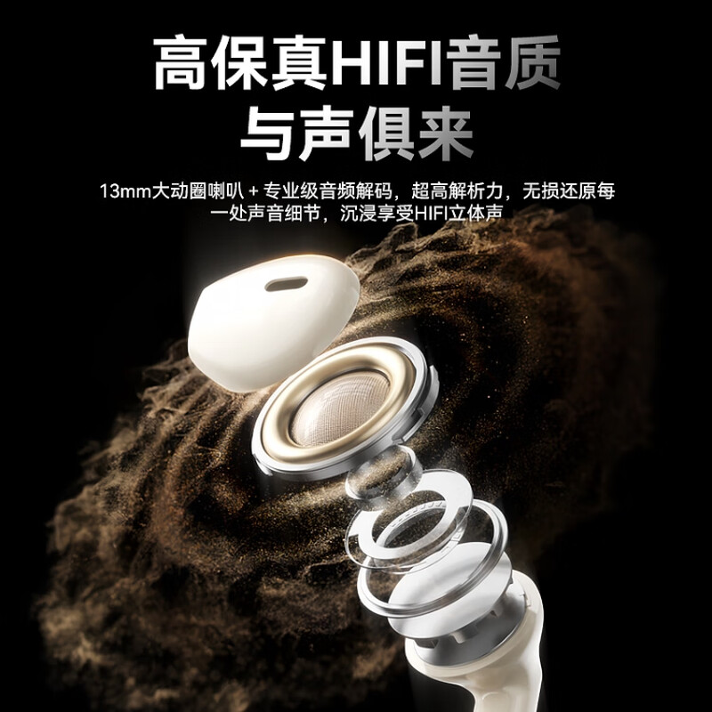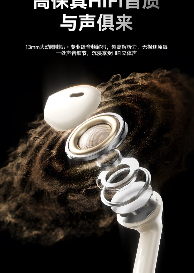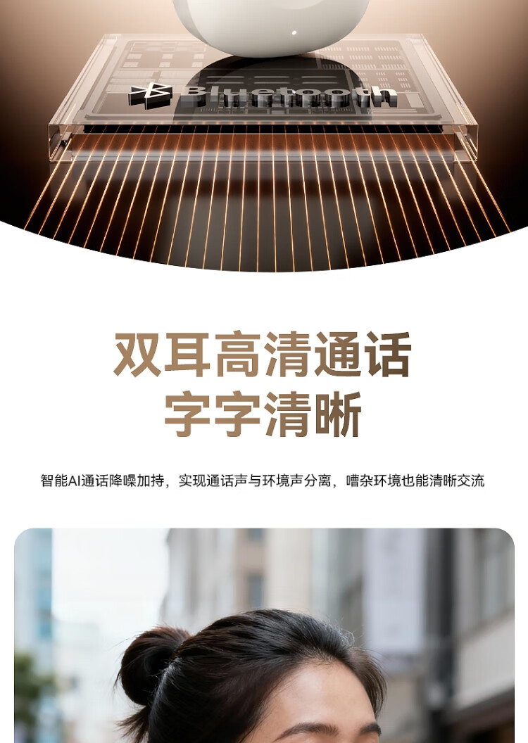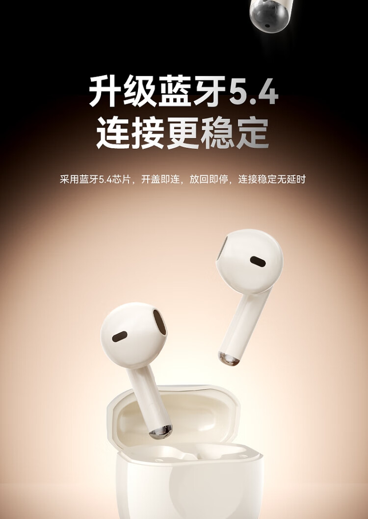 AI通话降噪,HIFI音质,开盖秒连;蓝牙5.4芯片 专业音频调校 高速稳定无延时 ;360°环绕HIFI立体声 智能触控