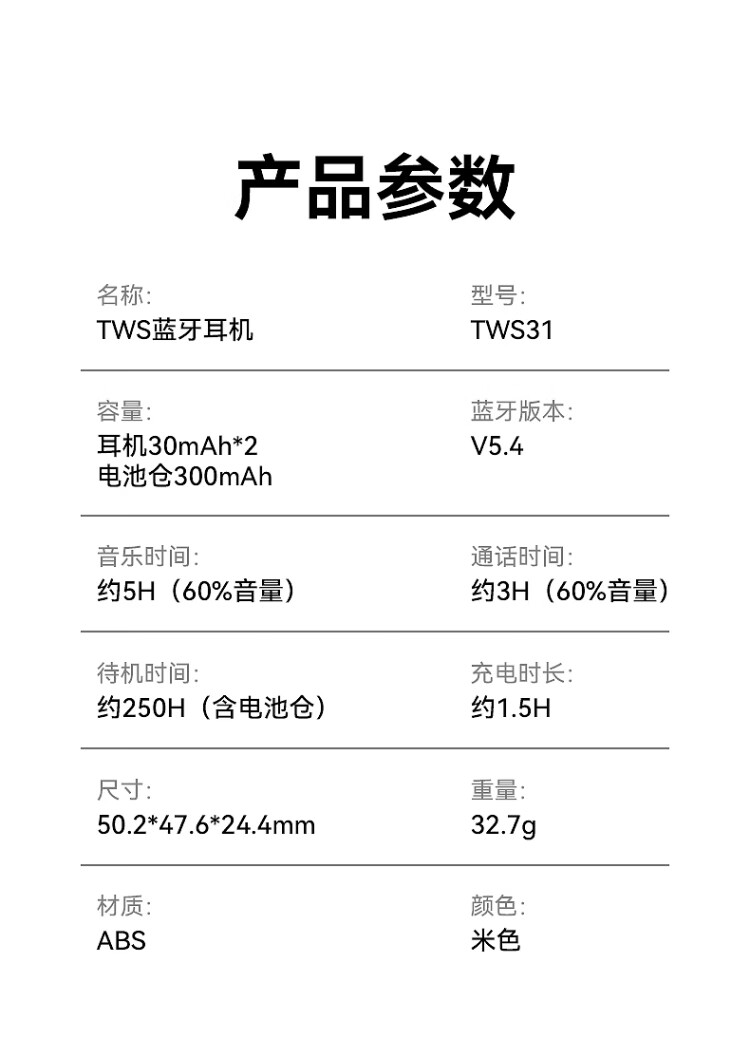 沃品 真无线半入耳式蓝牙耳机TWS31