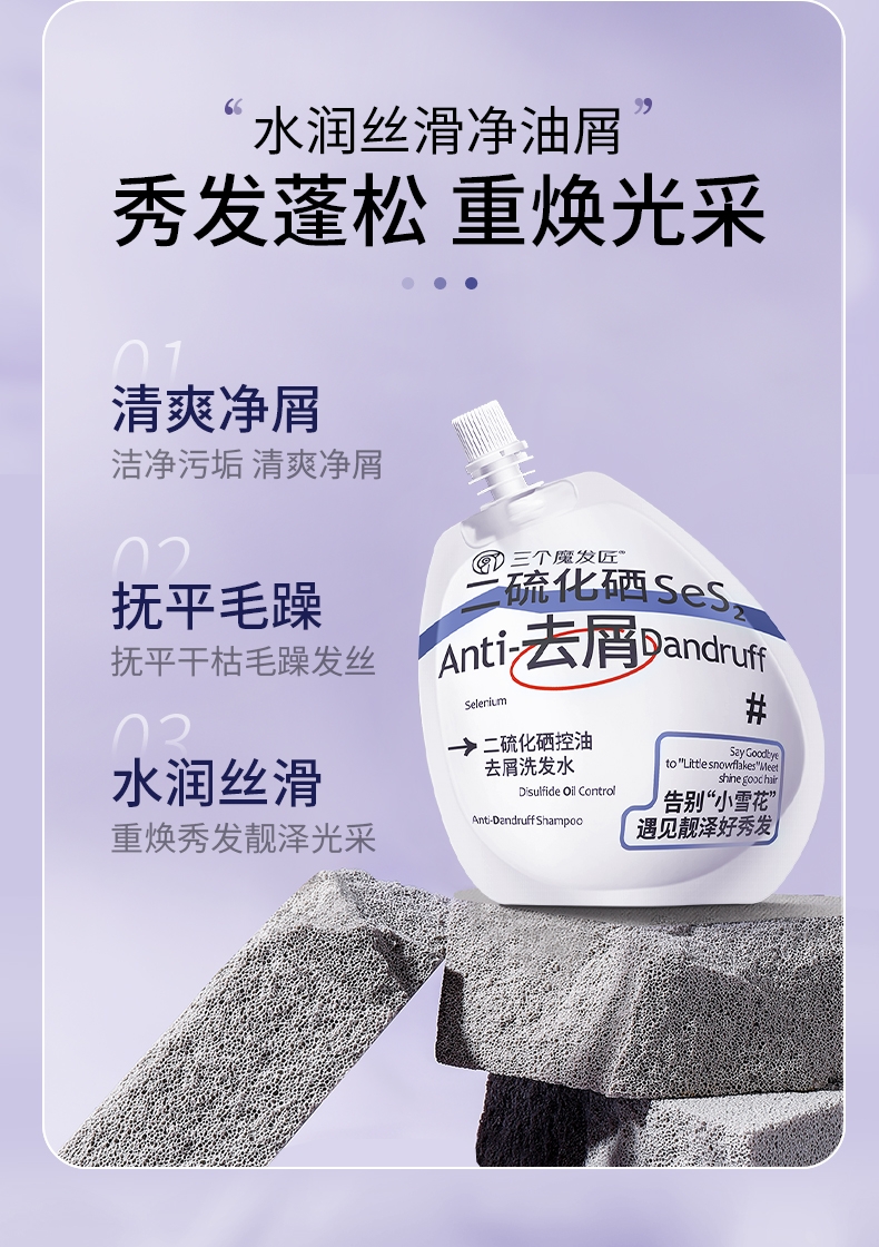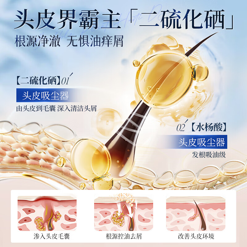 深层清洁 去屑控油;洁净污垢 清爽净屑;令发丝蓬松顺滑 水润丝滑