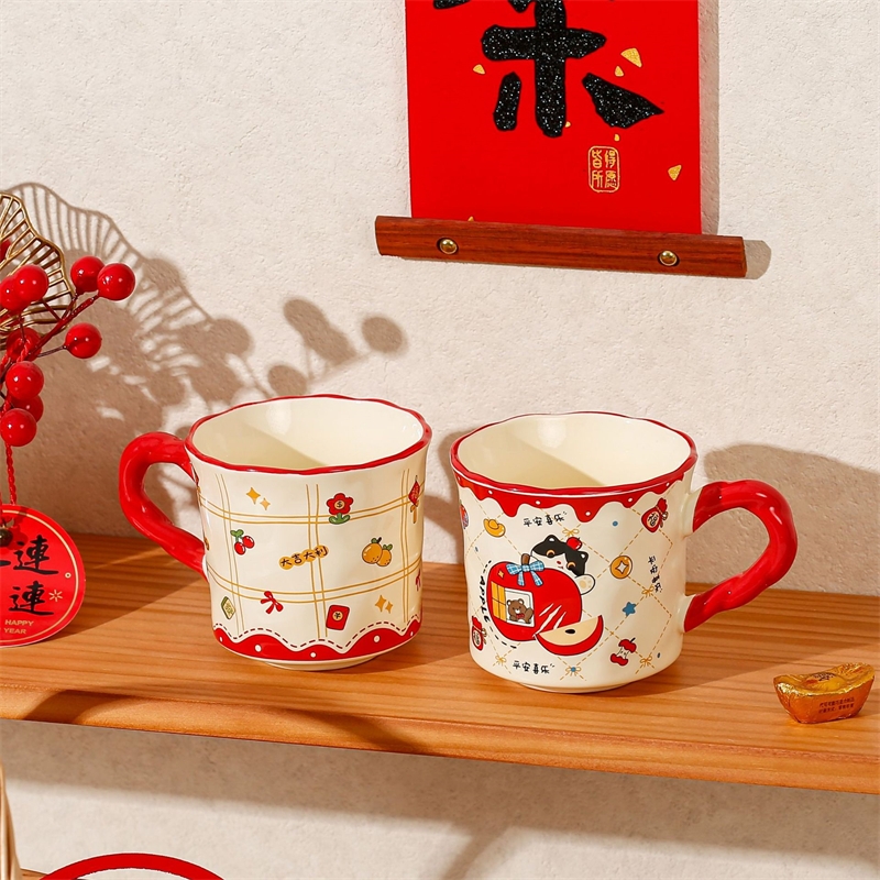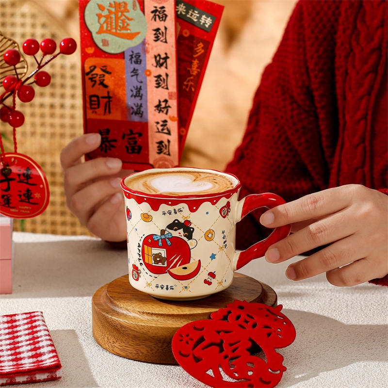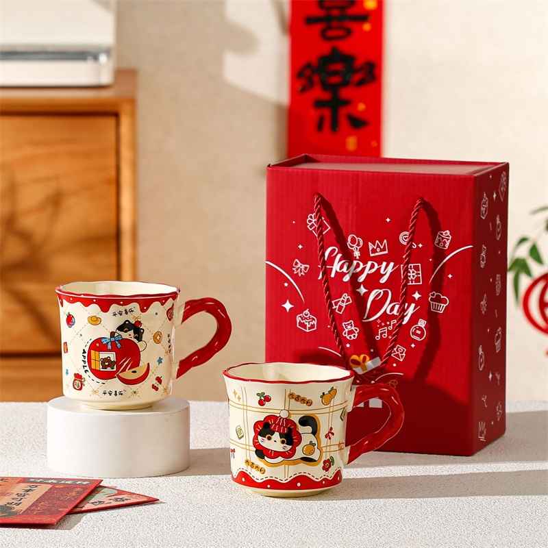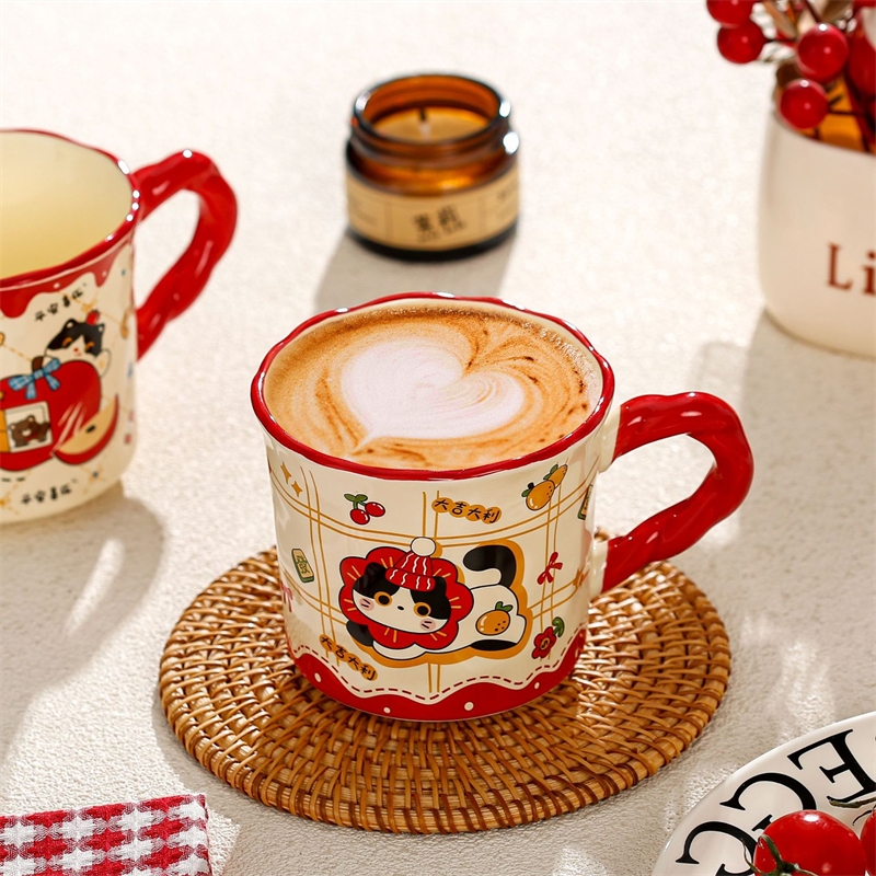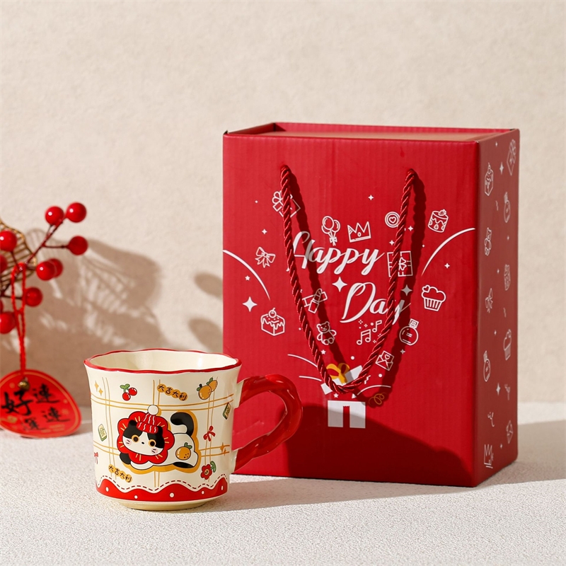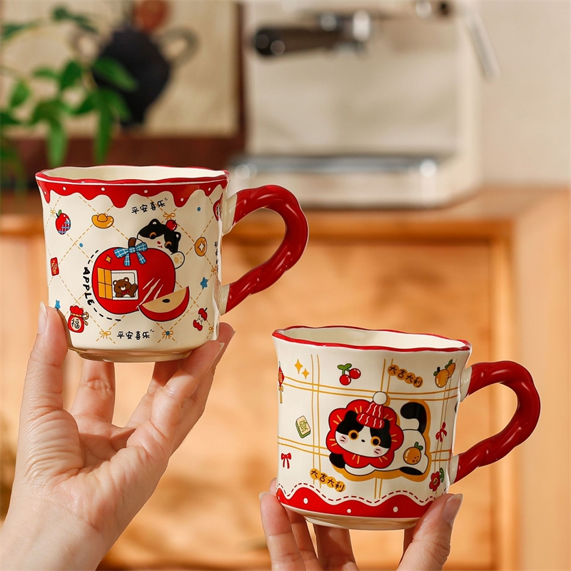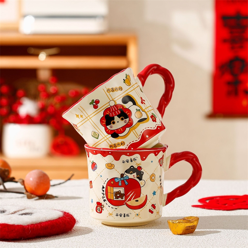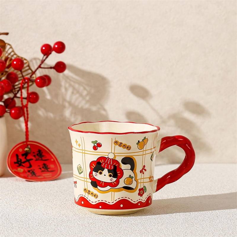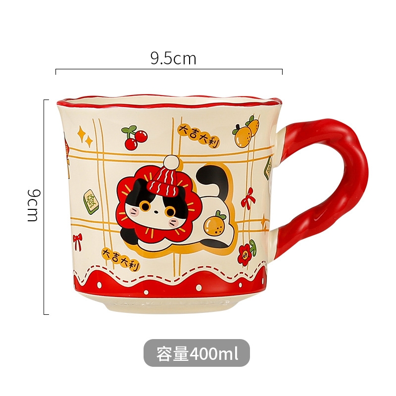 喜庆福气猫咪陶瓷杯400ml8827-3B