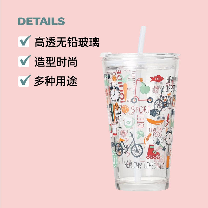 配置清单:玻璃杯体+盖子+硅胶吸管+独立彩盒
