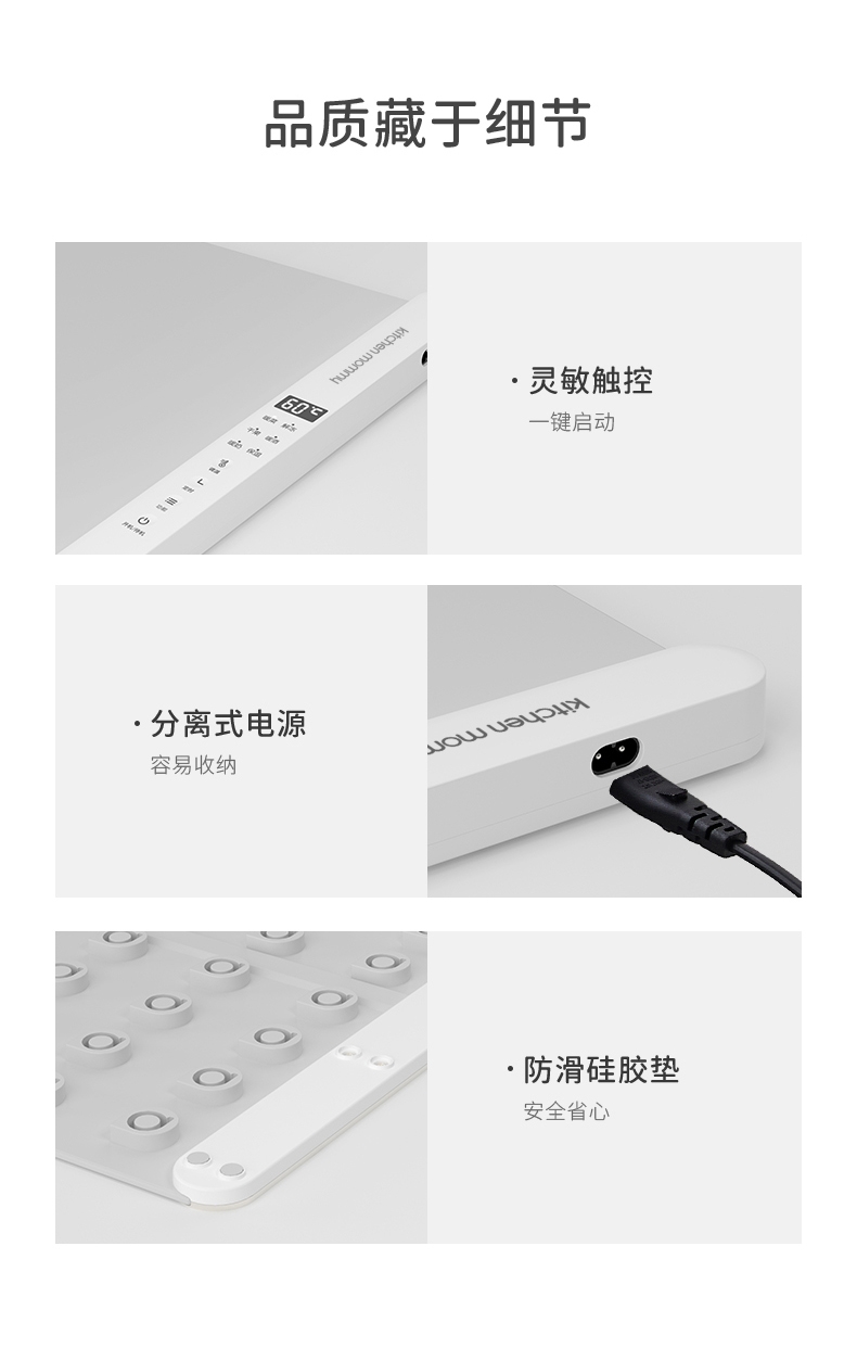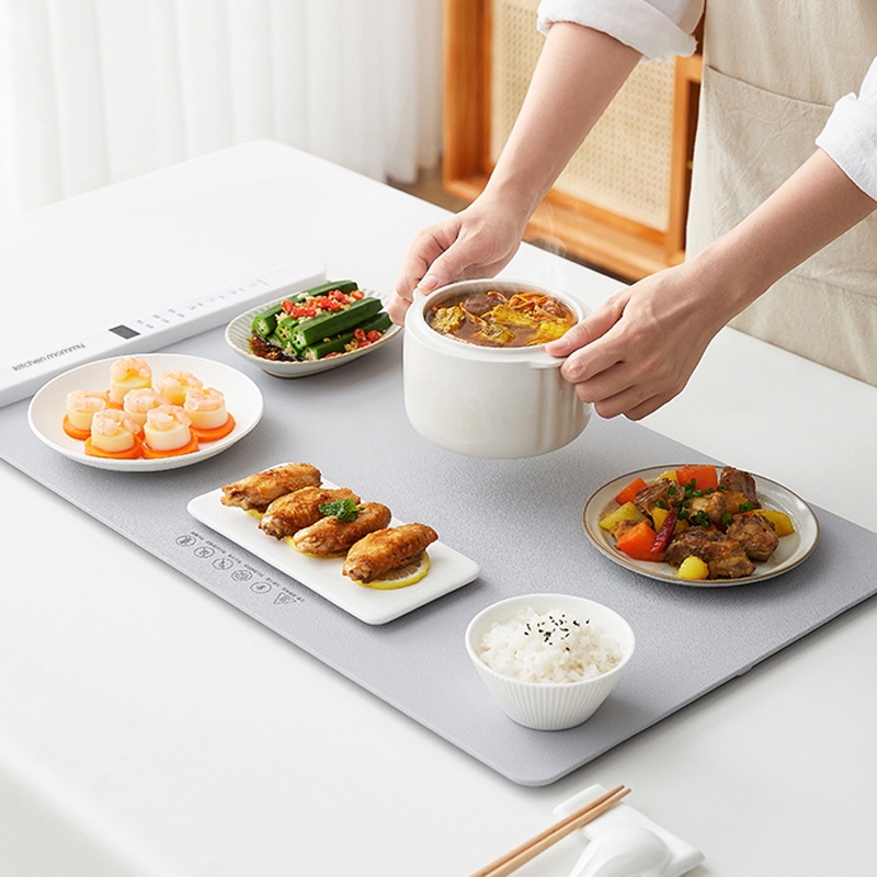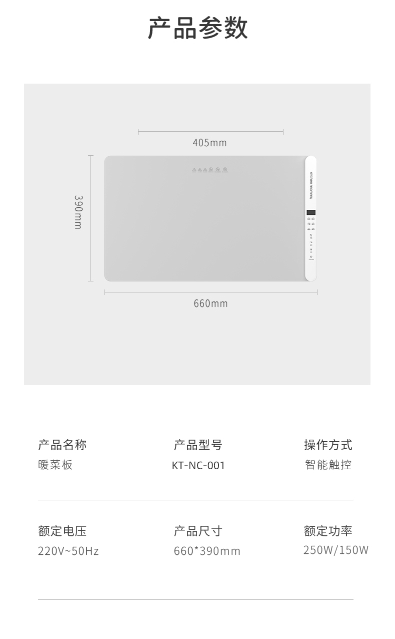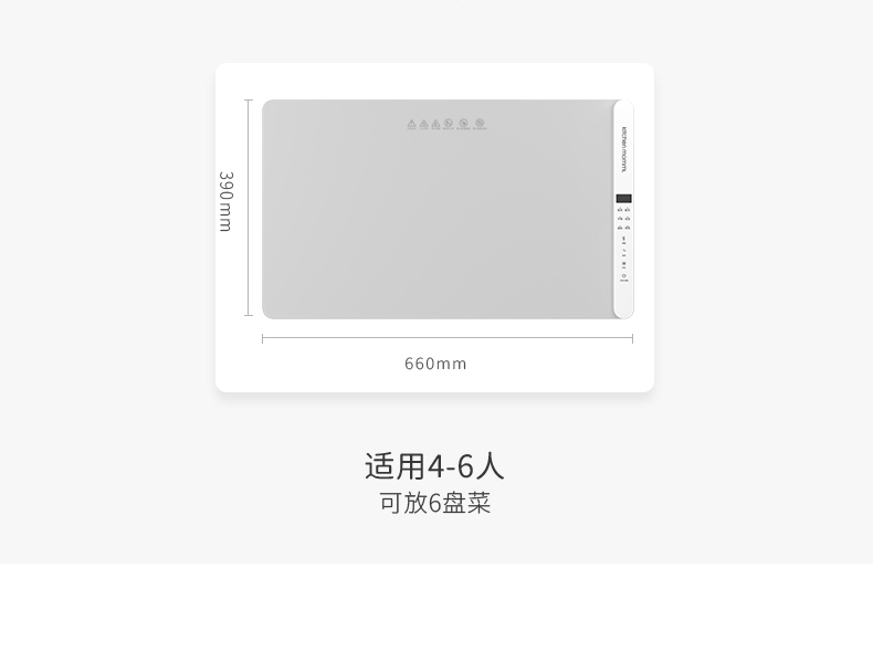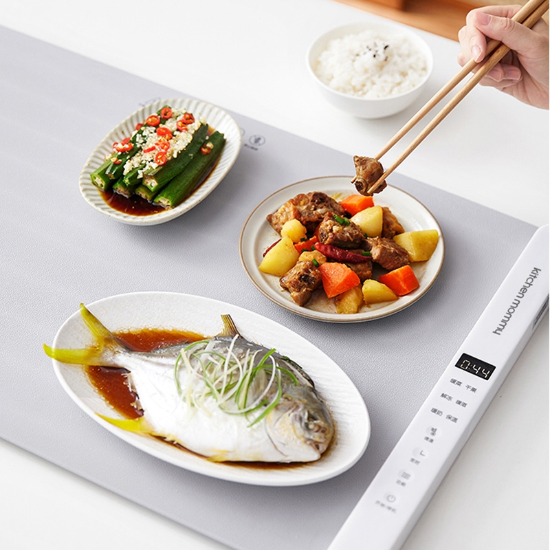 智能控温,锁住饭菜原有鲜美;耐⾼温⾯板,快速导热,告别冷饭菜;定时保温,可卷起收纳;温度可调40-99度,自由选择;多种功能,供您选择
