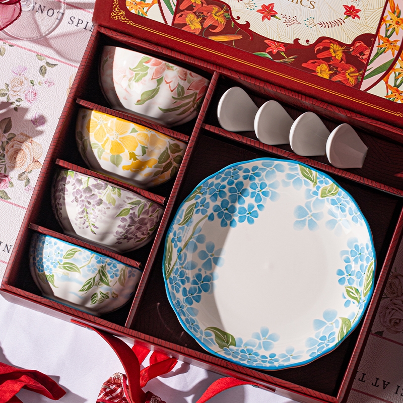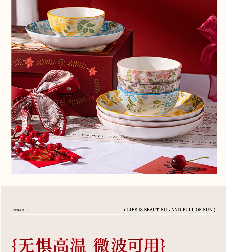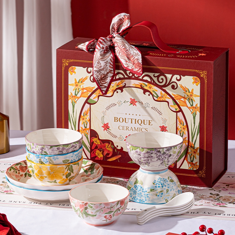顺聪 一路生花国潮碗勺盘家用套装
