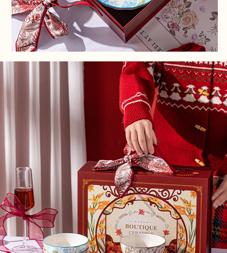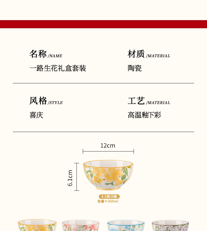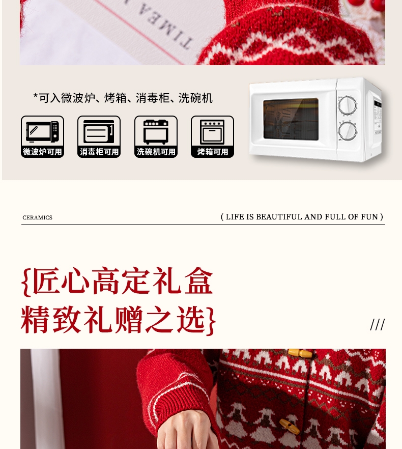 釉下彩绘工艺,瓷质细腻,美观易清洗;精美图案,颜值在线;精美礼盒装,送礼也不失体面
