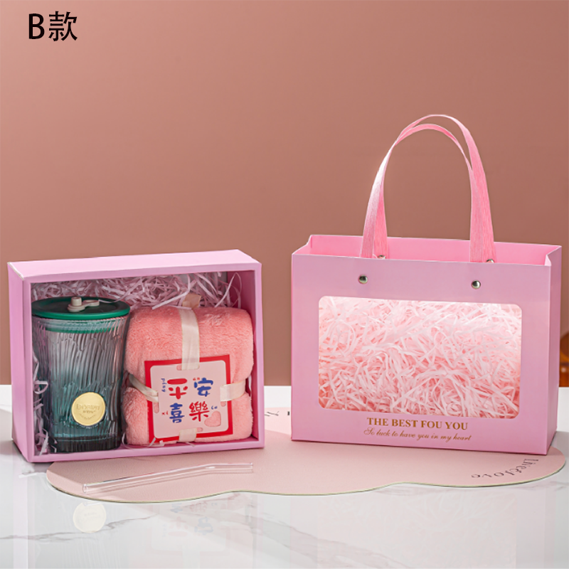 加佳礼物 平安喜乐毛巾吸管杯礼盒HXBSL/HX-3
