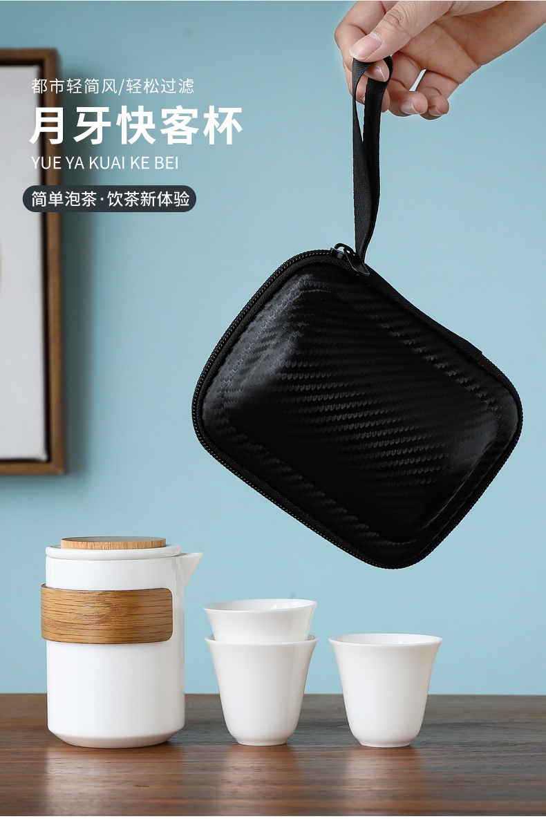 羊脂玉瓷实木旅行茶具套组