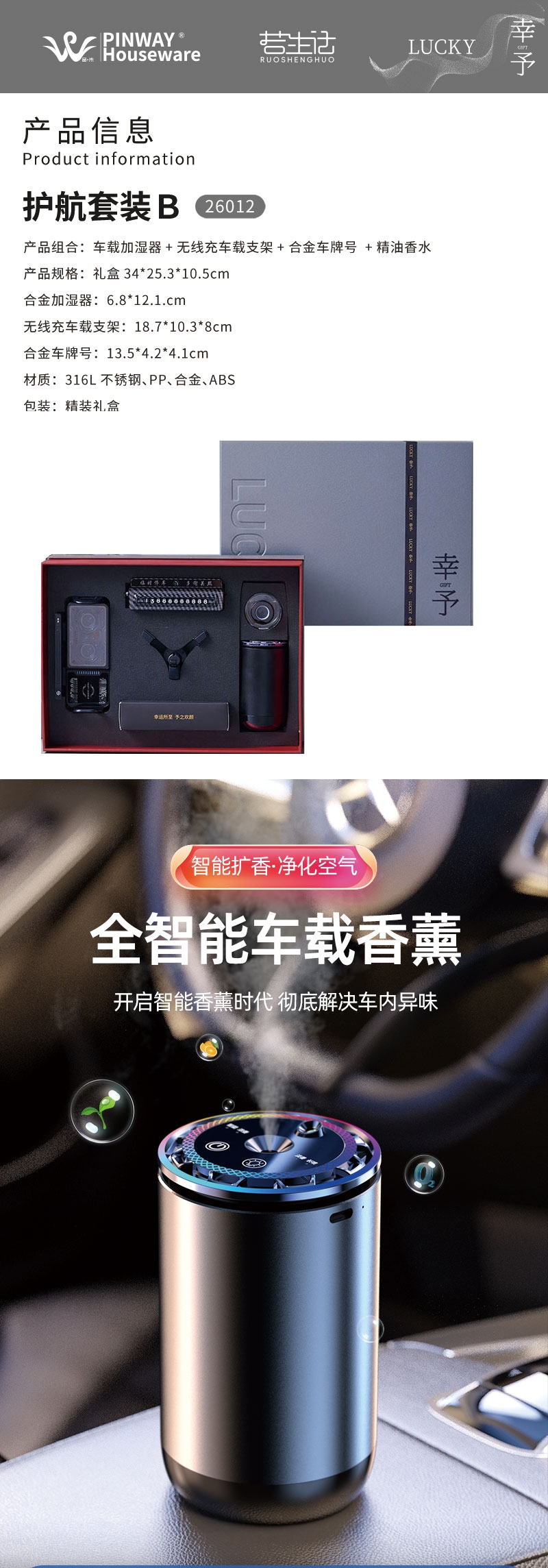 无线充车载支架;车载加湿器;合金车牌