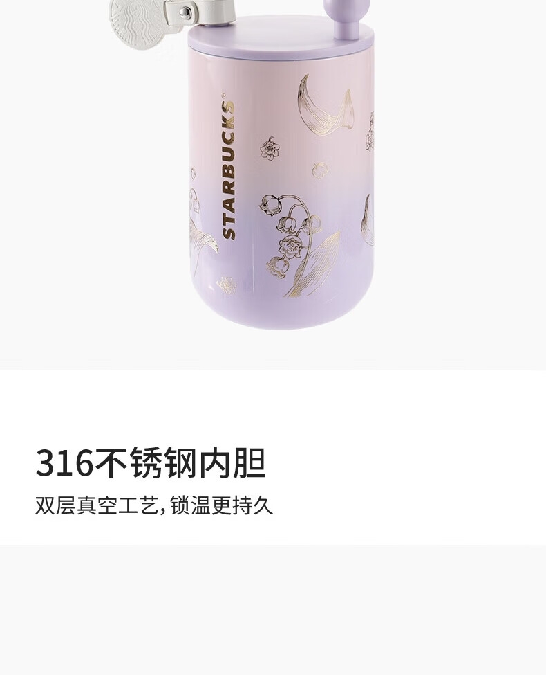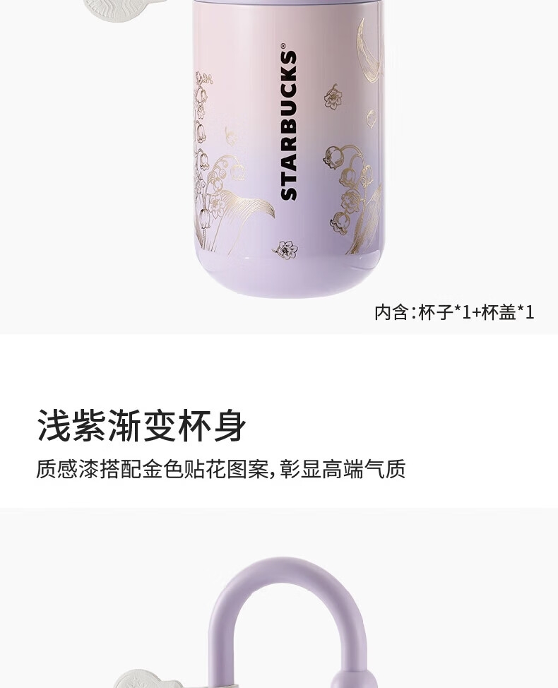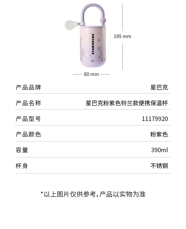 星巴克 粉紫色铃兰款便携保温杯390m11179920
