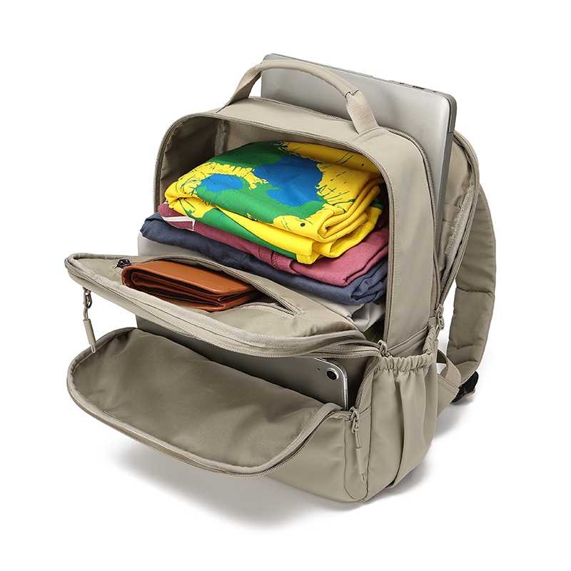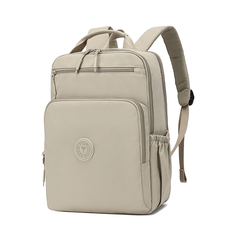 优选欧美出口畅销防水尼龙材质,时尚、结实;尼龙织带,手感细腻,结实耐用;背部拉杆织带,两侧水杯雨伞袋,出行更便捷