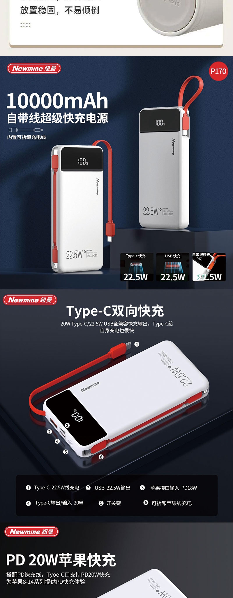 电源:22.5W快充 10000毫安