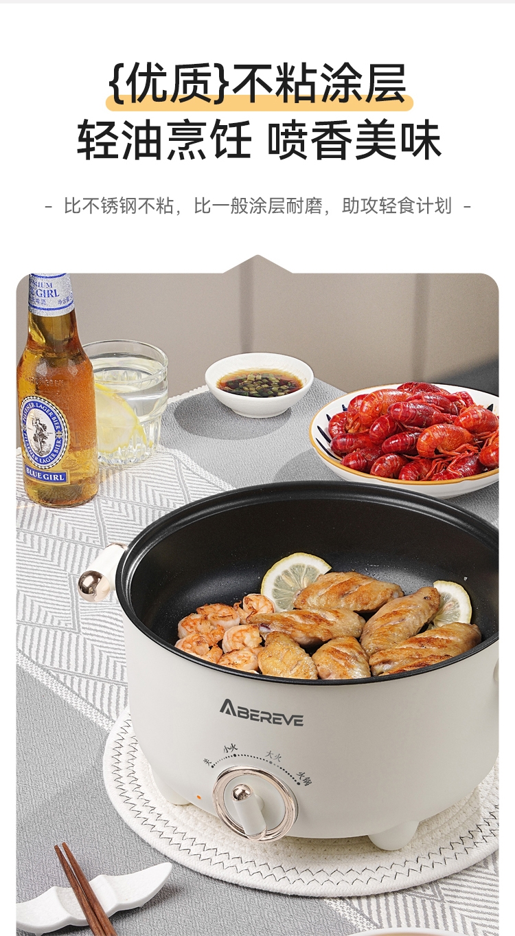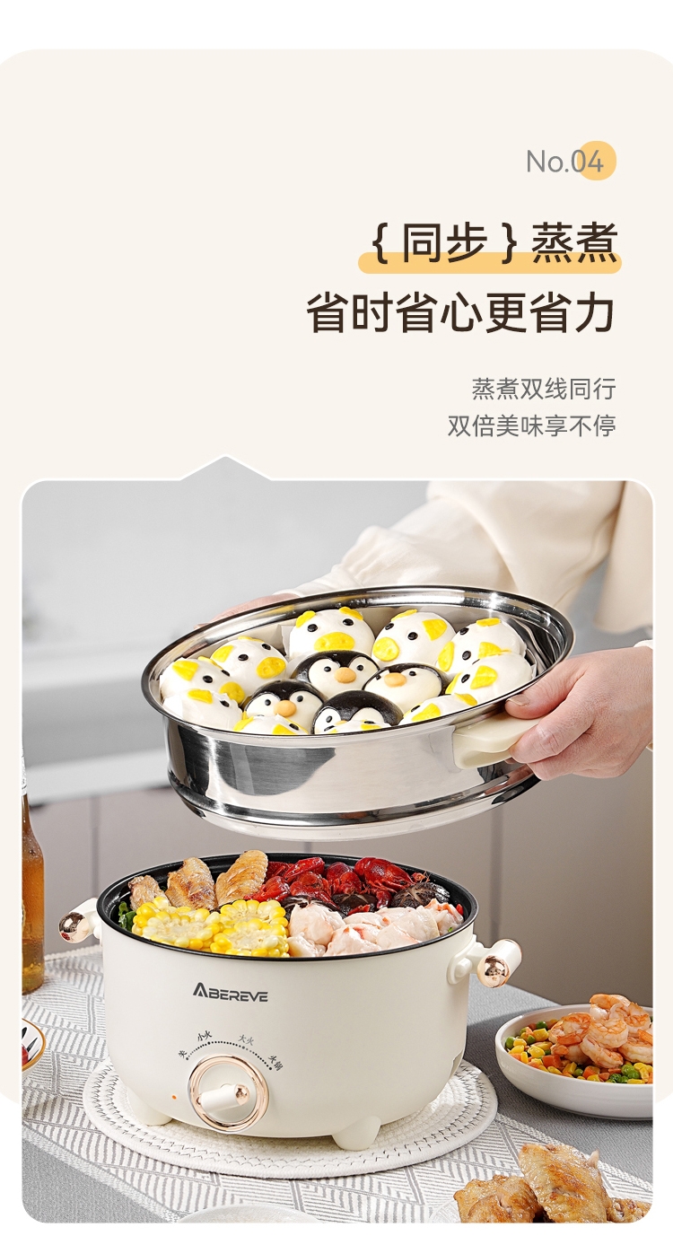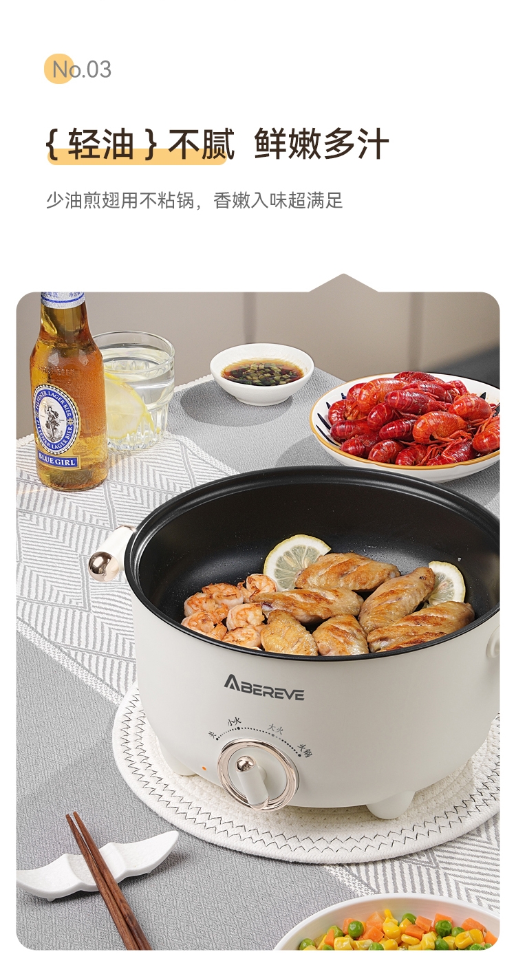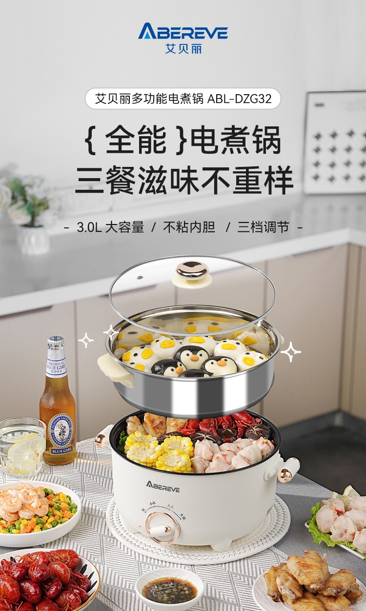 艾贝丽 多功能电煮锅3L带蒸笼ABL-DZG32