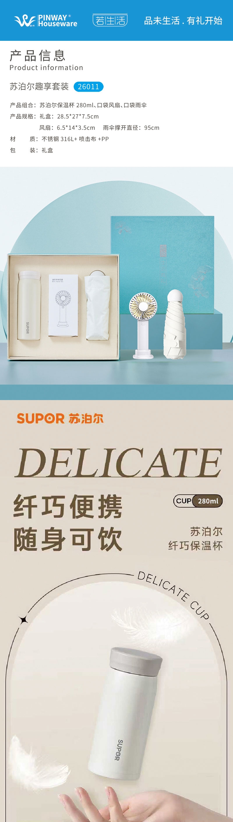 若生活 夏日清凉保温杯便携风扇雨伞套装26011