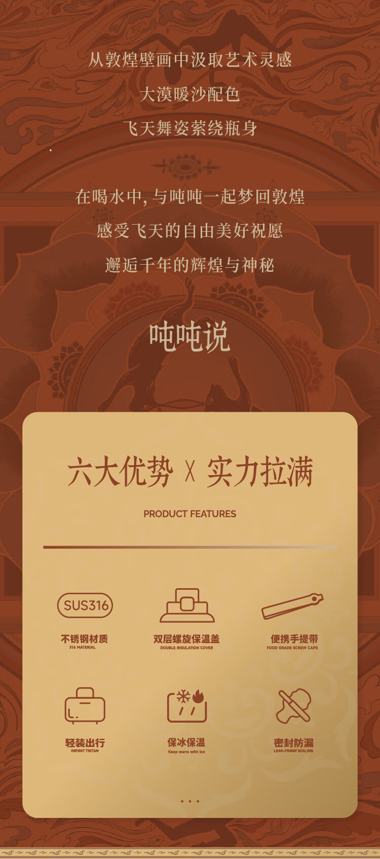 吨吨 联名敦煌飞天保温杯500ml
