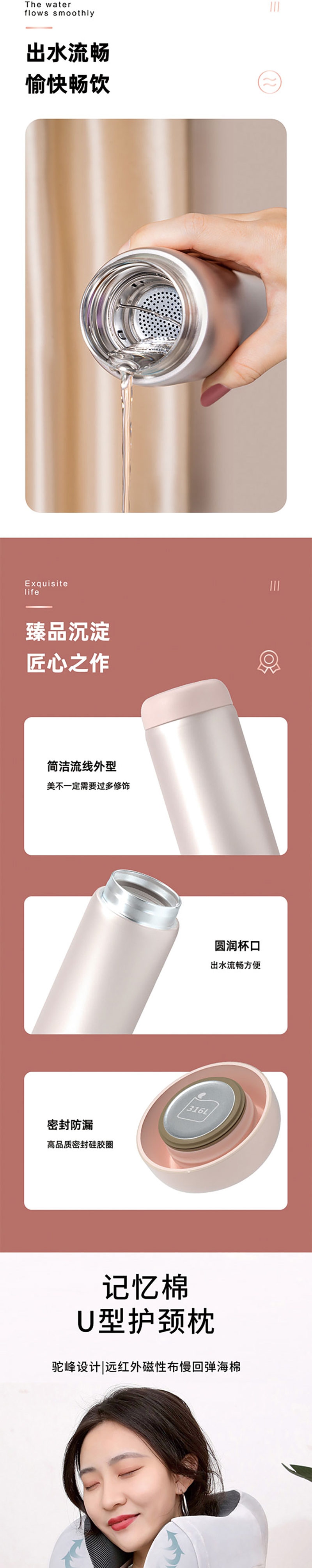 苏泊尔 316L 保温杯(带茶漏,泡茶喝热饮都方便;U 型颈枕(贴合脖颈,久坐 / 乘车不酸);礼盒装,出行礼 / 伴手礼都合适