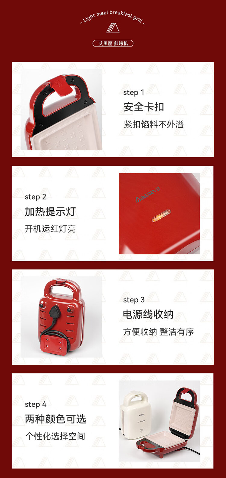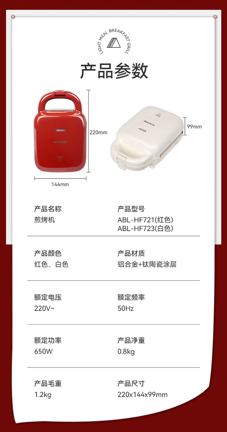 艾贝丽 家用早餐机煎烤机ABL-HF721/ABL-HF723