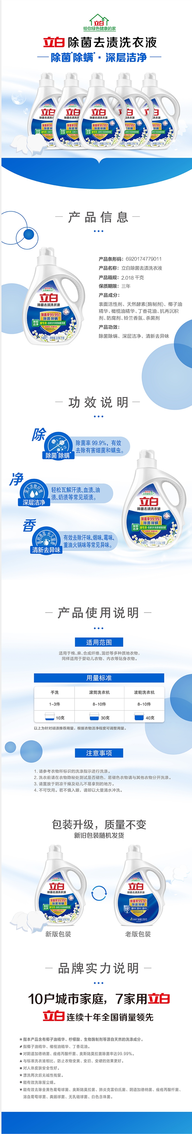 立白 除菌去渍洗衣液2.018千克