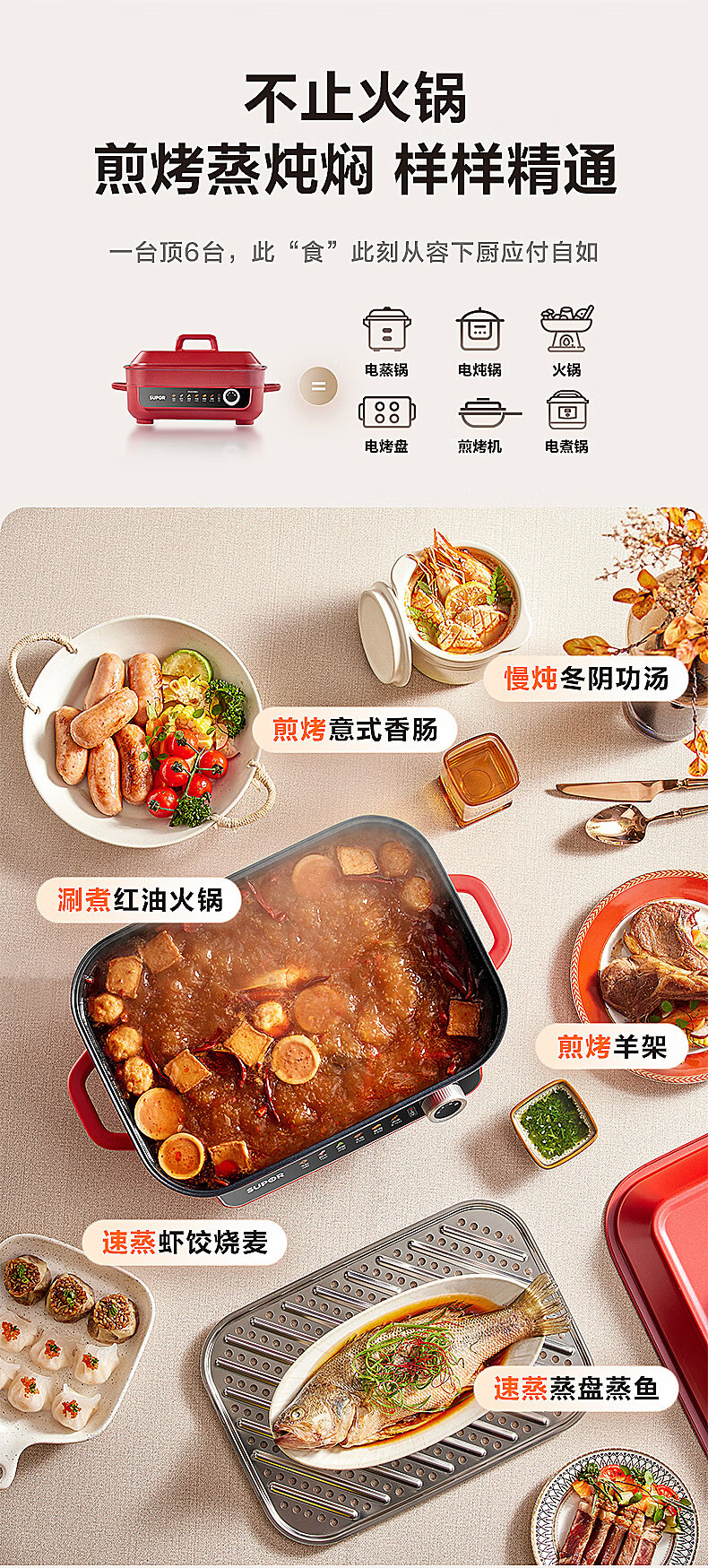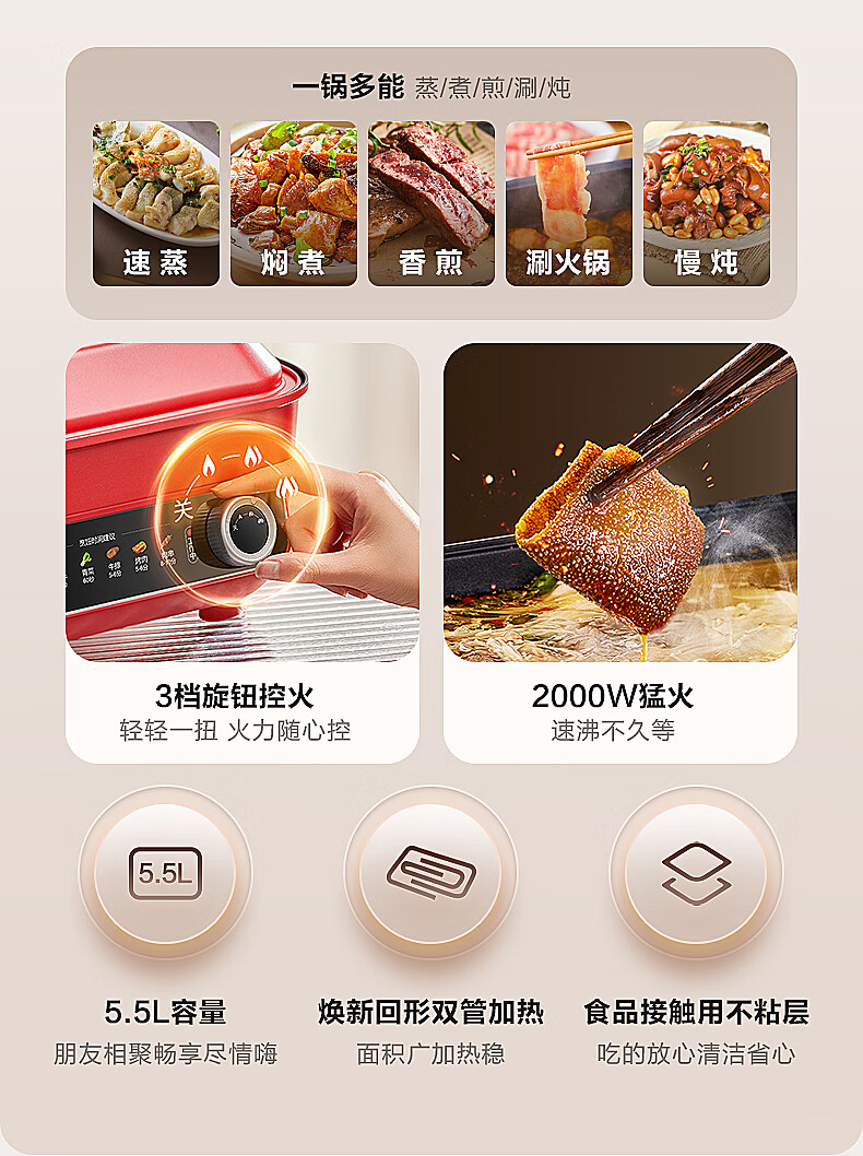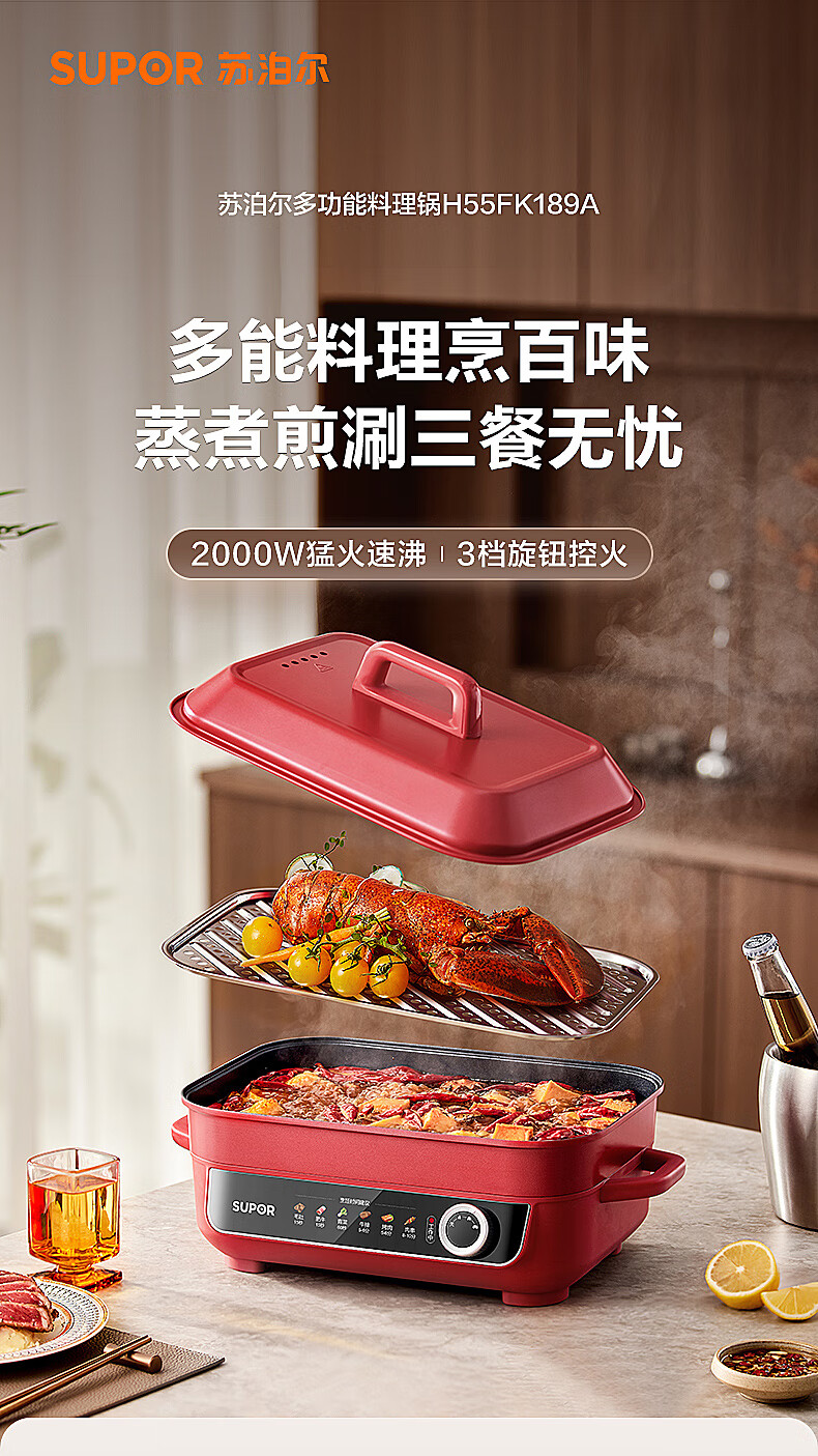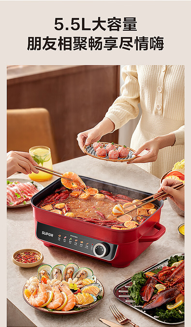 苏泊尔 5.5L多功能家用电火锅H55FK189A