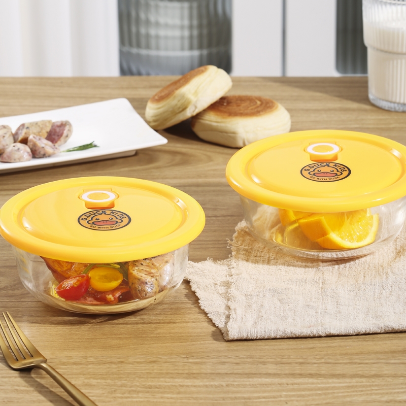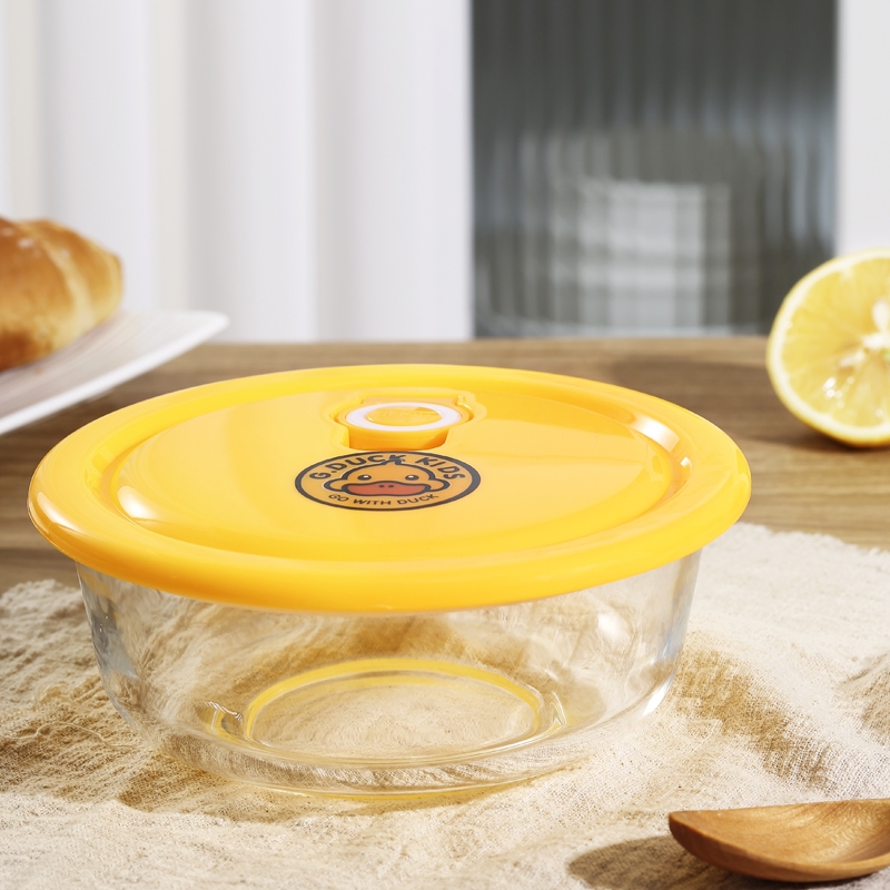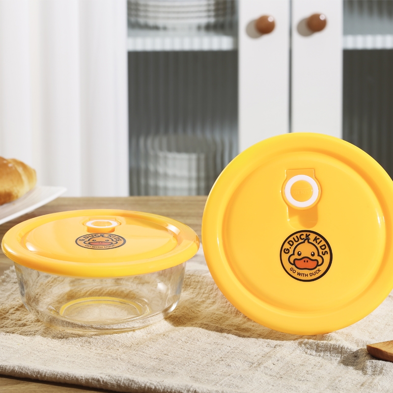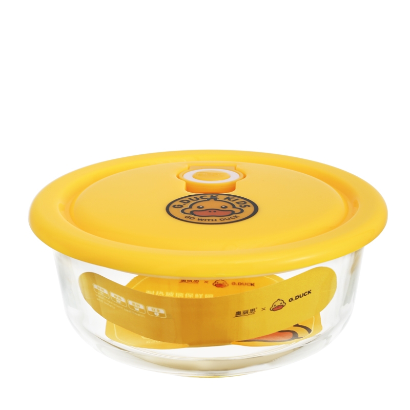 小黄鸭联名款,爆款产品。;耐热玻璃,微波炉适用。;密封保鲜,不漏水。