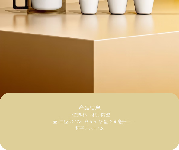 便携茶具套装:一壶四杯 材质:陶瓷 壶:口径8.3CM 高6cm 容量:300毫升 杯子:4.5×4.8