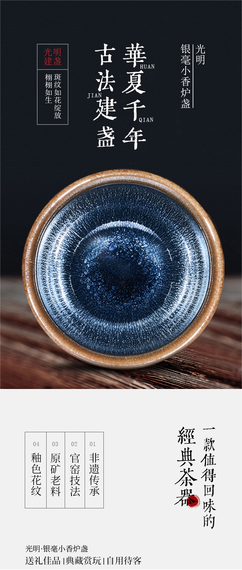 「银毫釉 + 香炉型」双重辨识度;「聚香 + 适配茶性」实用茶感;「非遗工艺 + 上手质感」品质加分