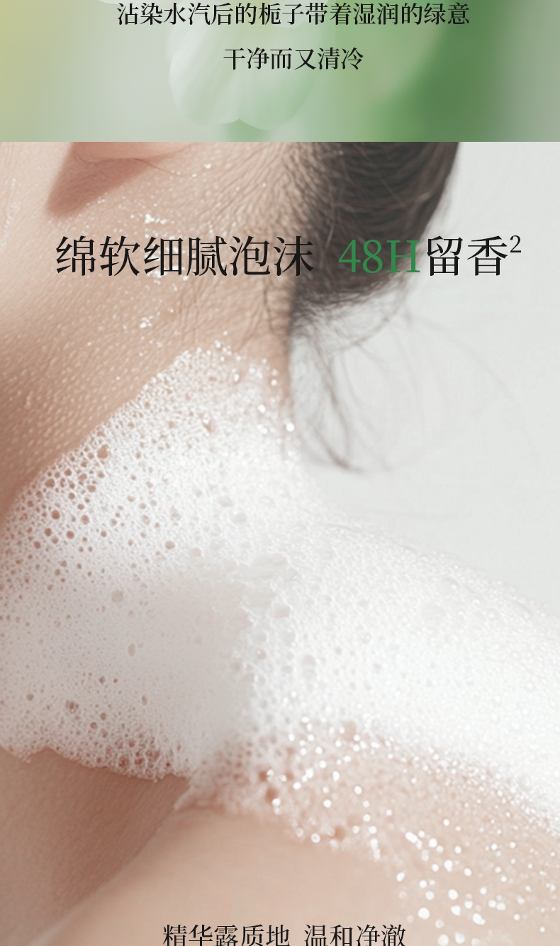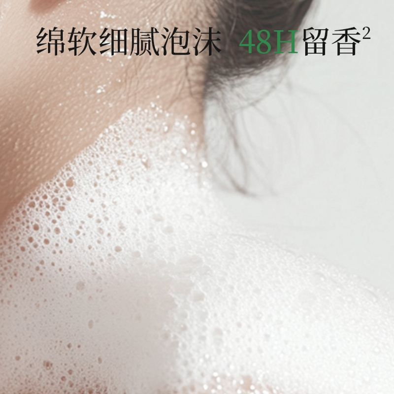 满室芬芳,渐渐弥散;精华露质地 温和净澈;绵软细腻泡沫