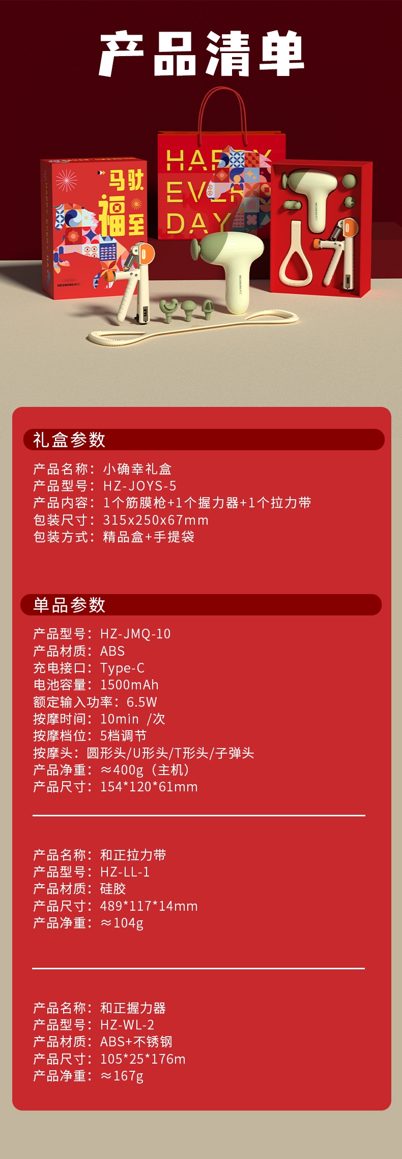 礼盒内容: 筋膜枪HZ-JMQ10 握力器HZ-WL-2 拉力带 HZ-LL-1