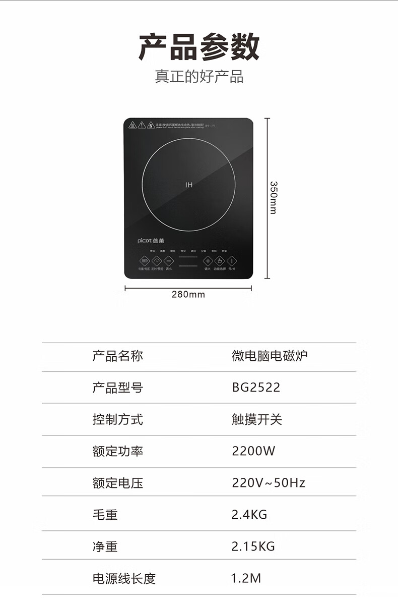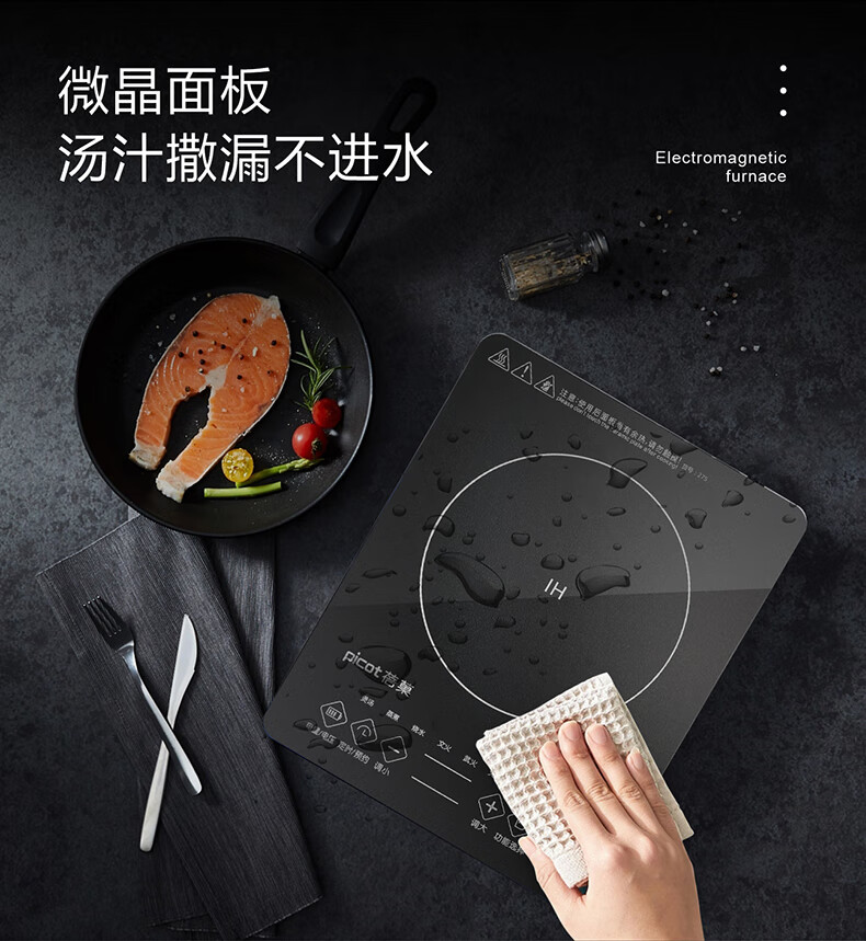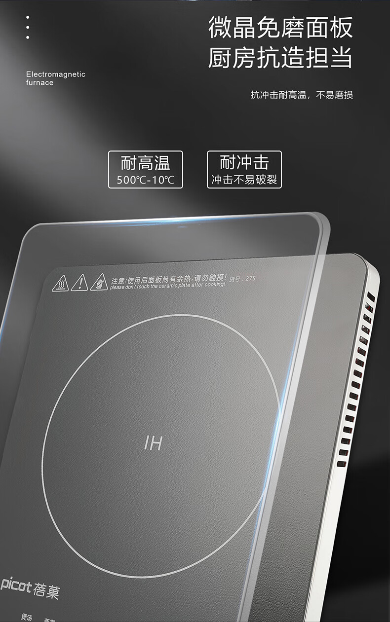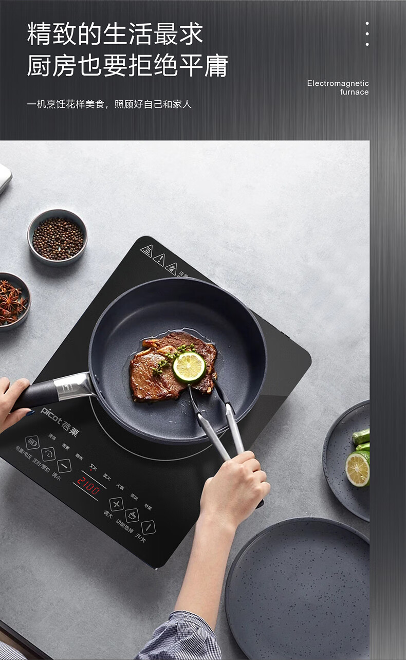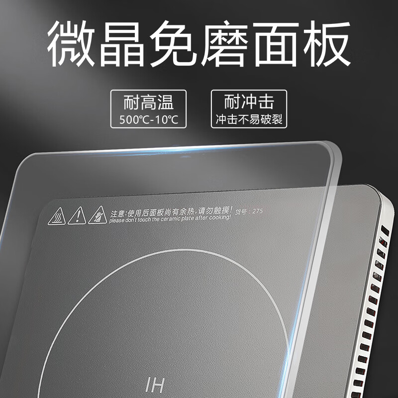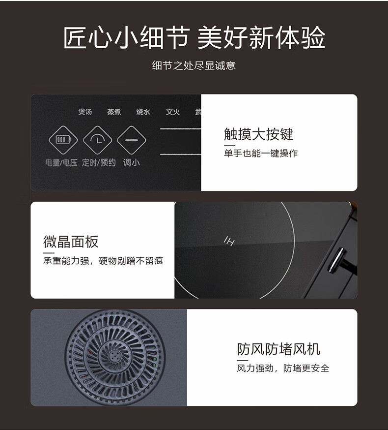 磨砂防滑黑晶面板;不锈钢机壳;精确控温,静音散热风扇,安心安全