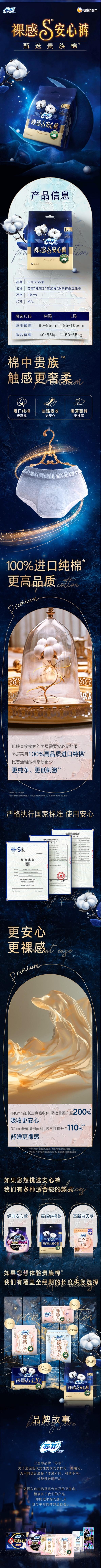 苏菲 裸感S安睡裤L3片*3包