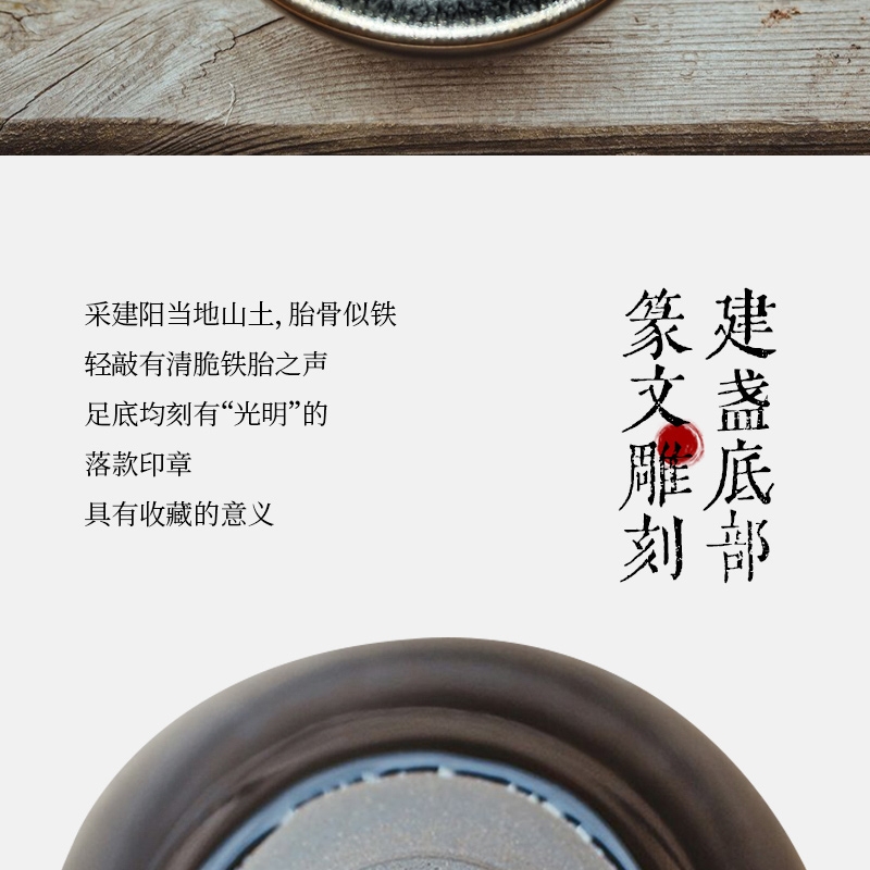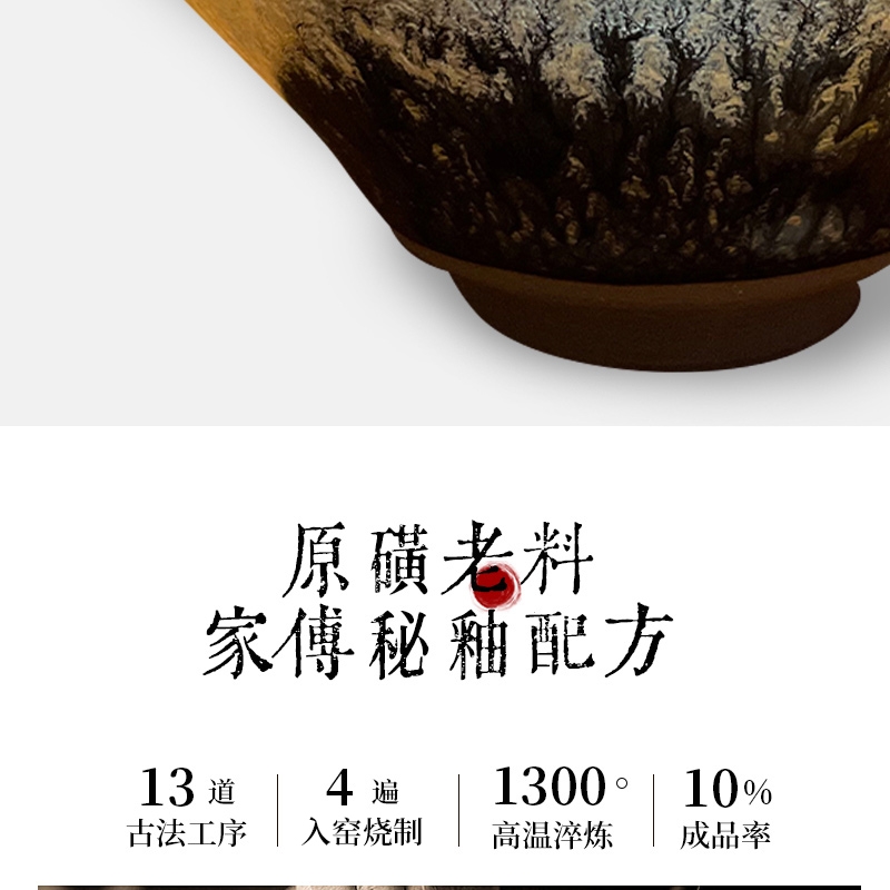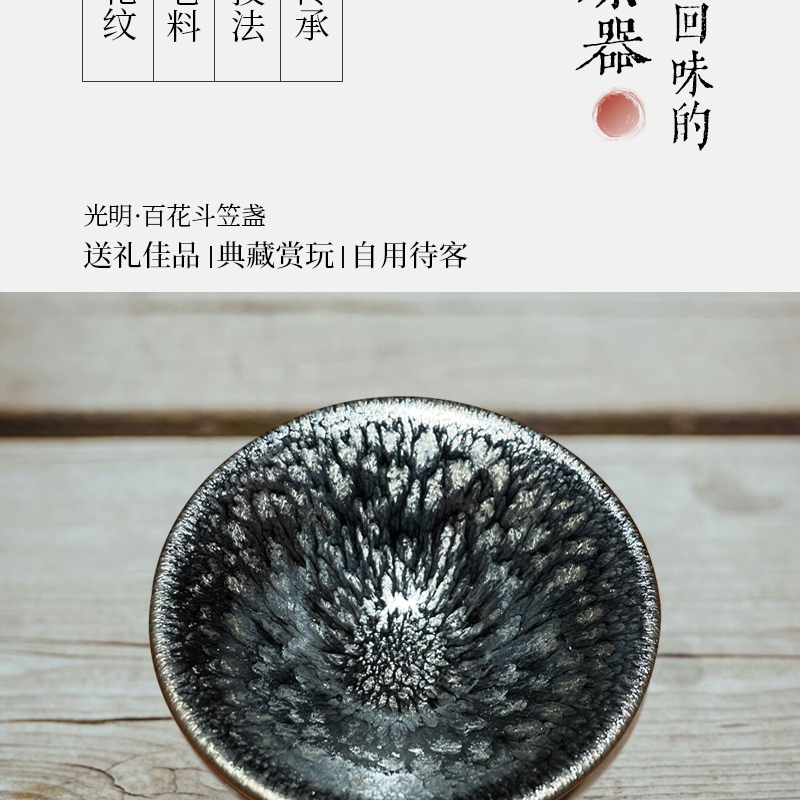 百花窑变釉 + 斗笠经典器型,颜值意境双绝;非遗建盏工艺 + 高含铁胎体,聚香赏茶两相宜;易洁耐用 + 场景百搭,传统美学适配现代生活