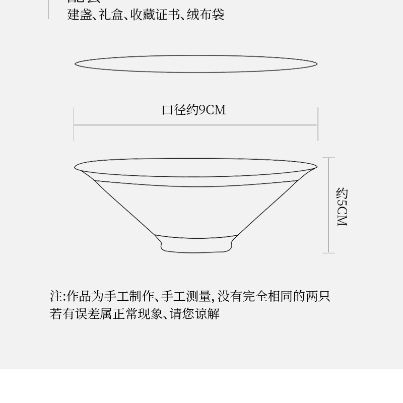 建盏规格:口径9.5cm,高度4cm
