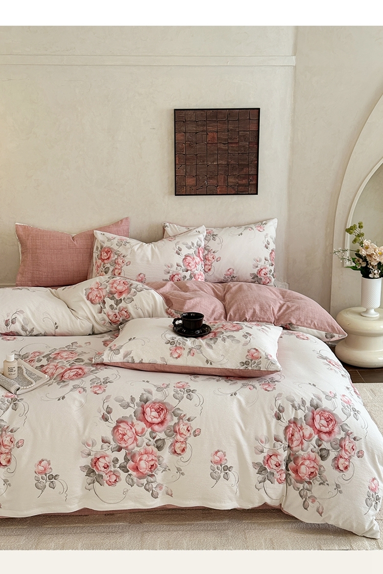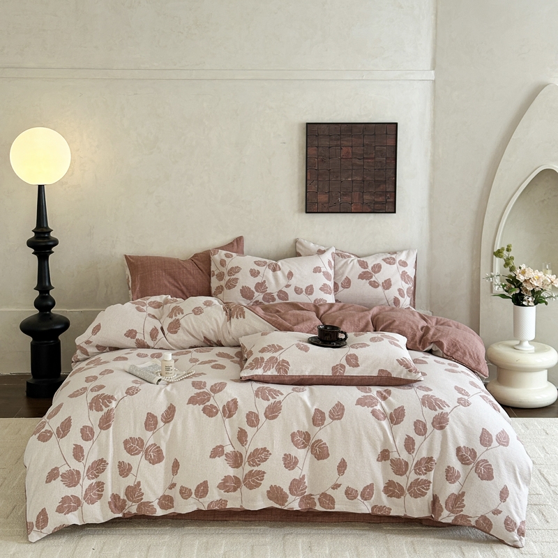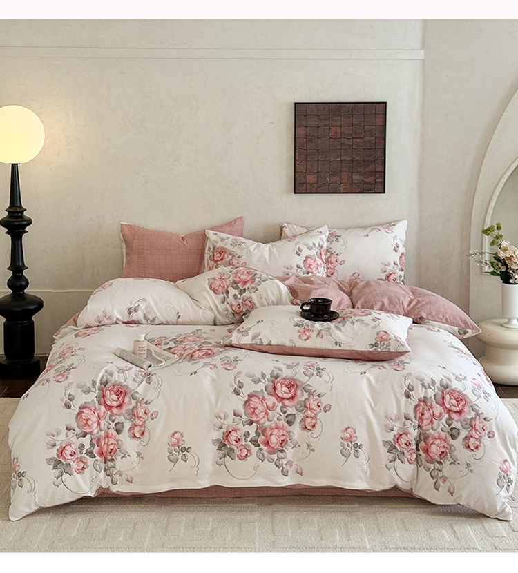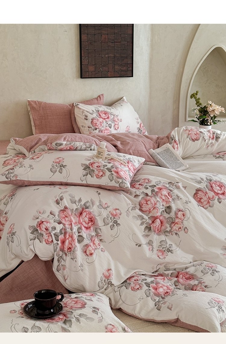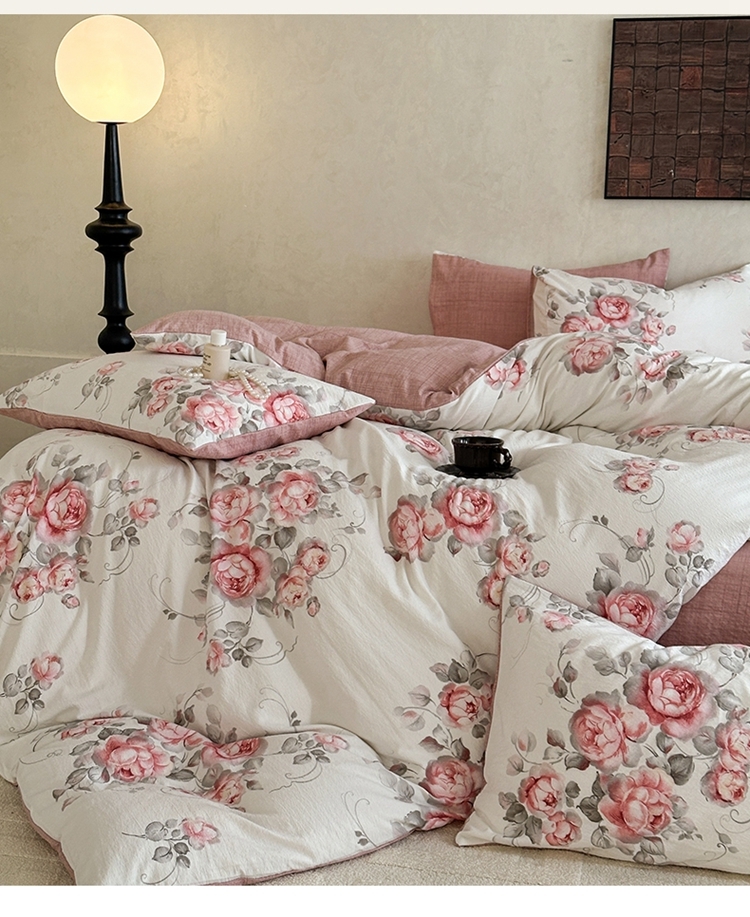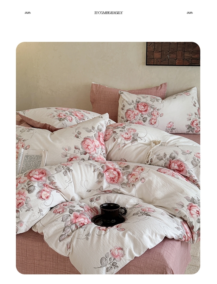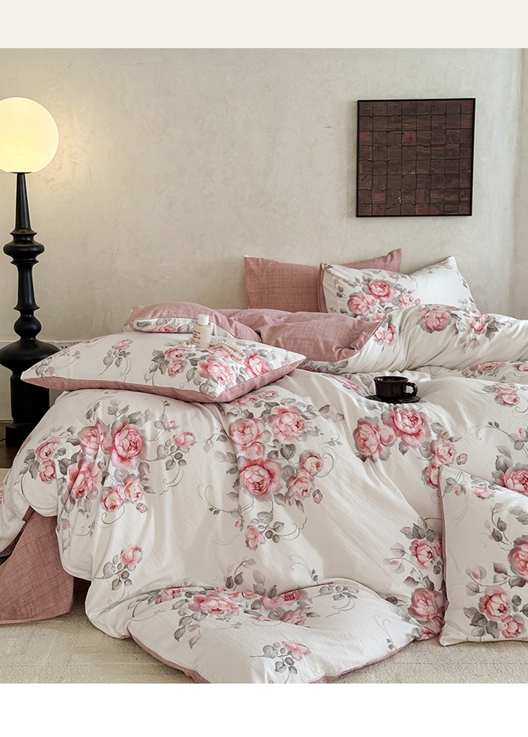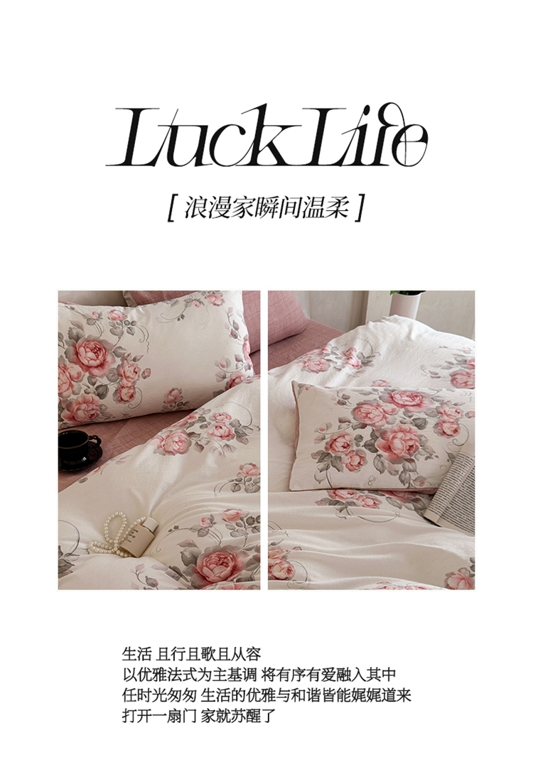 水洗原麻面料舒适柔软细腻 触感软糯呵护肌肤令人心动;艺术系灵感之源花边设计展现温柔氛围提升卧室层次感;新一代活性印染工艺色牢度高不易褪色可水洗支持机洗解