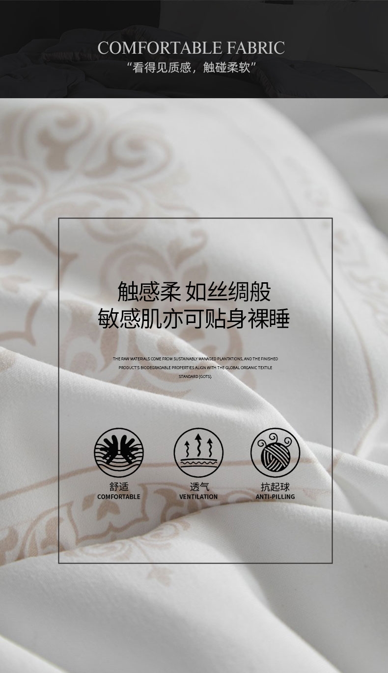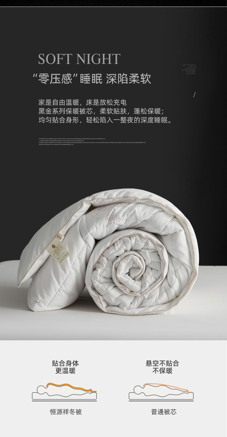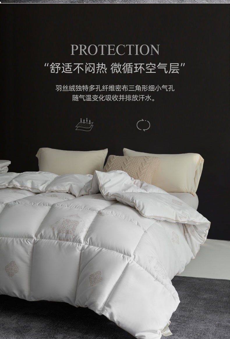 自然绵软,软而有度,会呼吸的被子;让自己感觉睡在云端被爱包围;轻柔透气的纤维