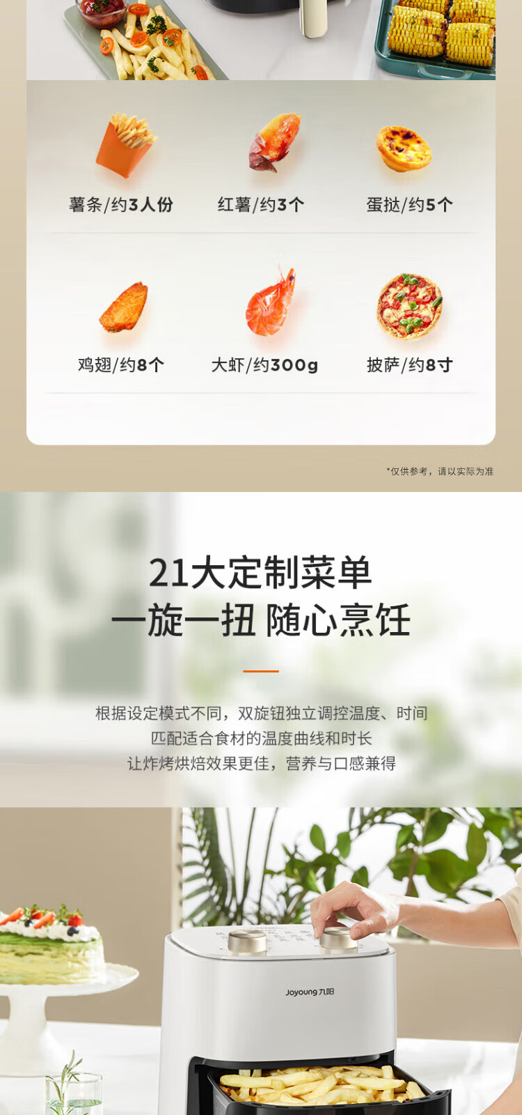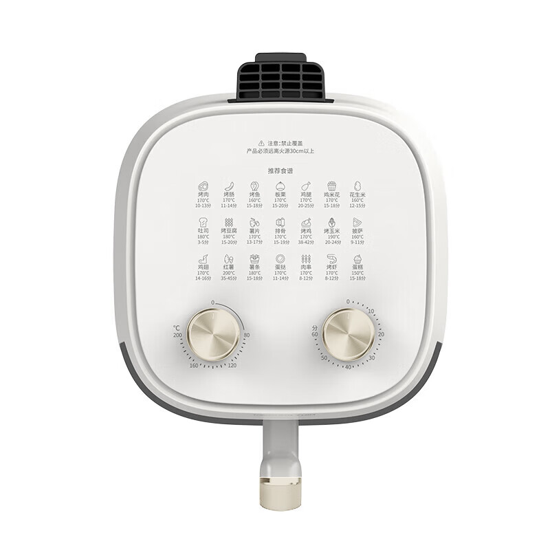 广角可视窗口,食材清晰可见;双旋钮独立控温/控时,使用灵活;5L大容量,耐用金属内腔
