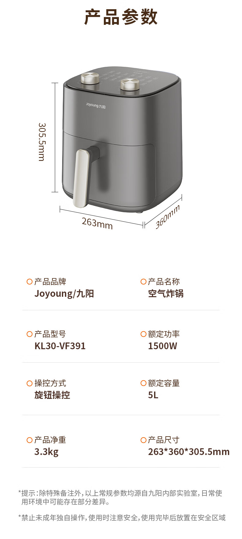 九阳 家用多功能空气炸锅5LKL30-VF391